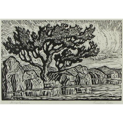 Birger Sandzen (1871-1954) Broadmoor Art Academy, Linoleum Cut, "Sunshine Lake", 1928, image size 6" x 9", pencil signed