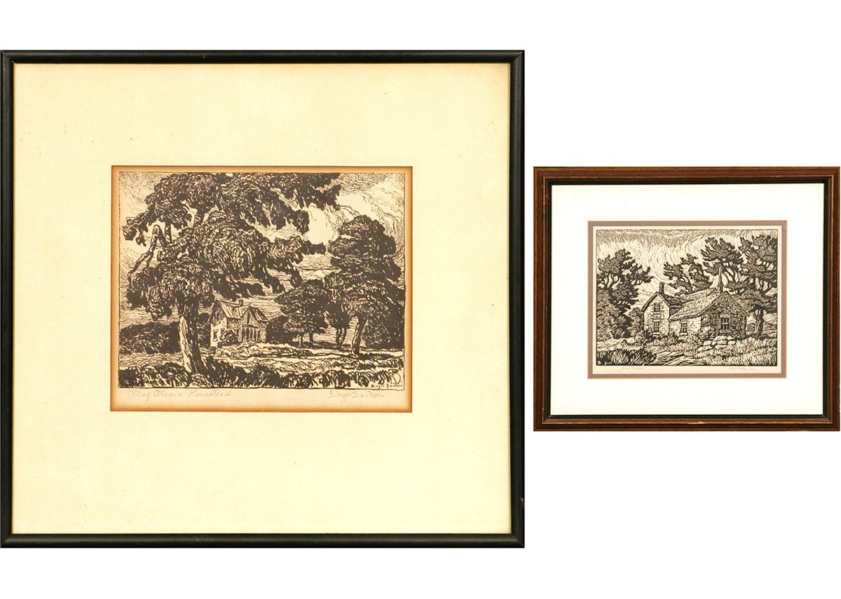 Birger Sandzen (1871 - 1954). Two works. 1. Olof Olson's Homestead. 14.875" x 19.875" lithograph. Pencil inscription lower margin: Olof Olson's Homestead Birger Sandzen. Printed in 1922. 2. Blue Valley Farm. 9" x 11.9375" linoleum cut. Pencil inscription lower margin: Birger Sandzen Blue Valley Farm.