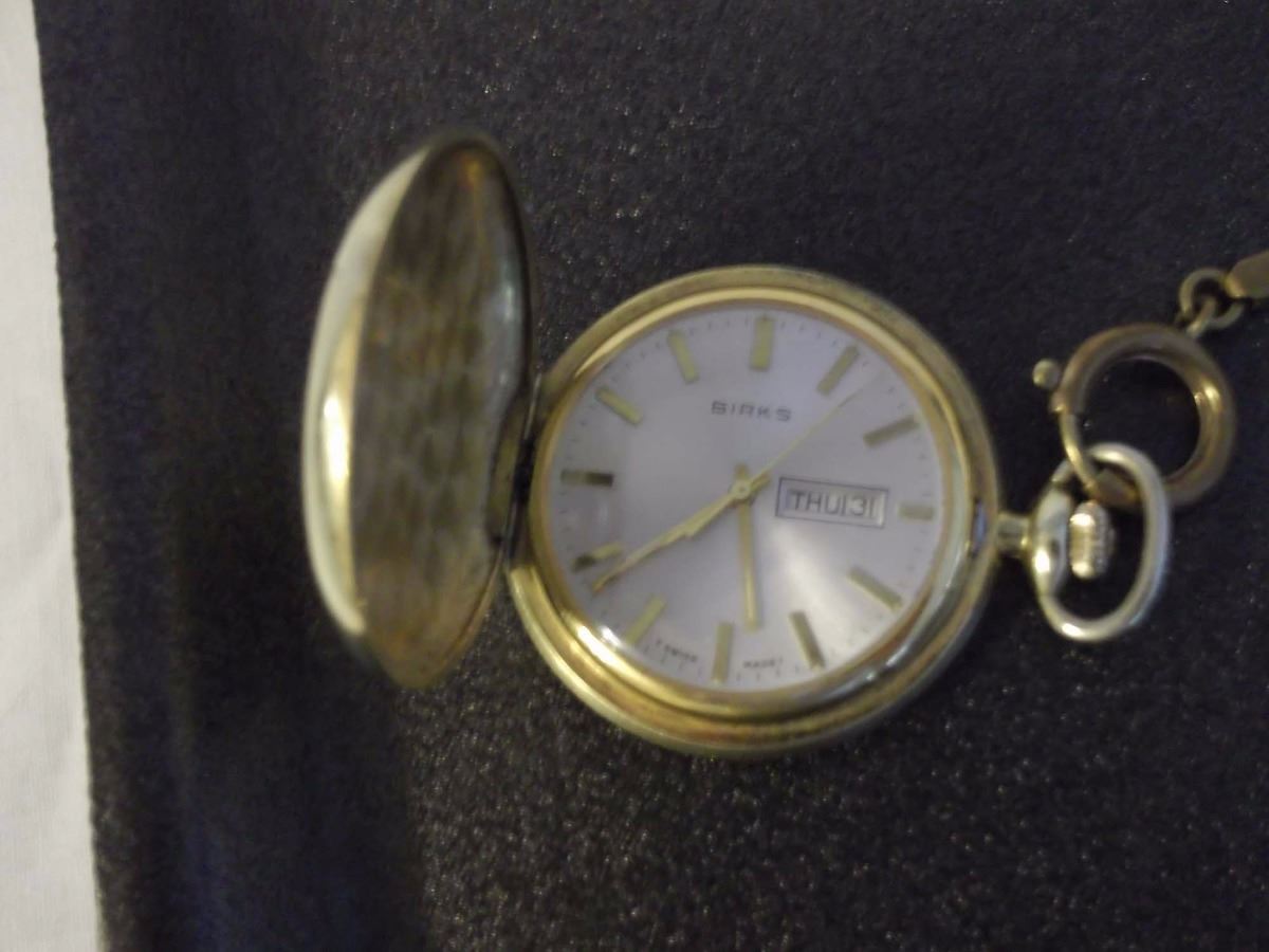 Birks 17 Jewel Calendar Pocket Watch And Chain Swiss Made (Not Working, Over Wound)