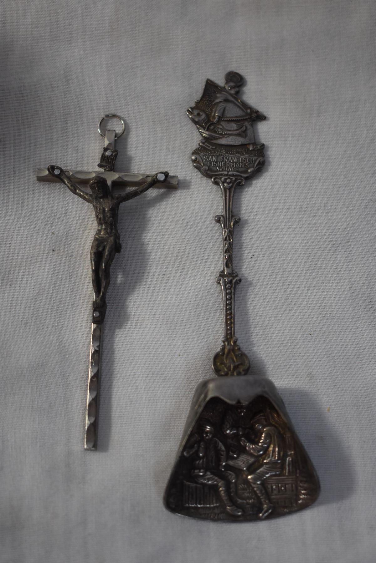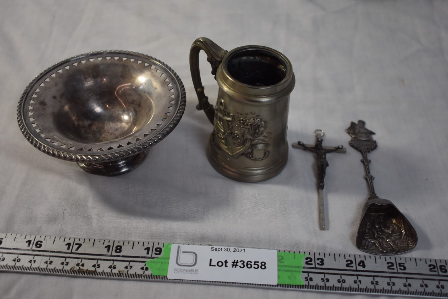 Birks Serving Dish with Pewter Mug, Cross, and Spoon