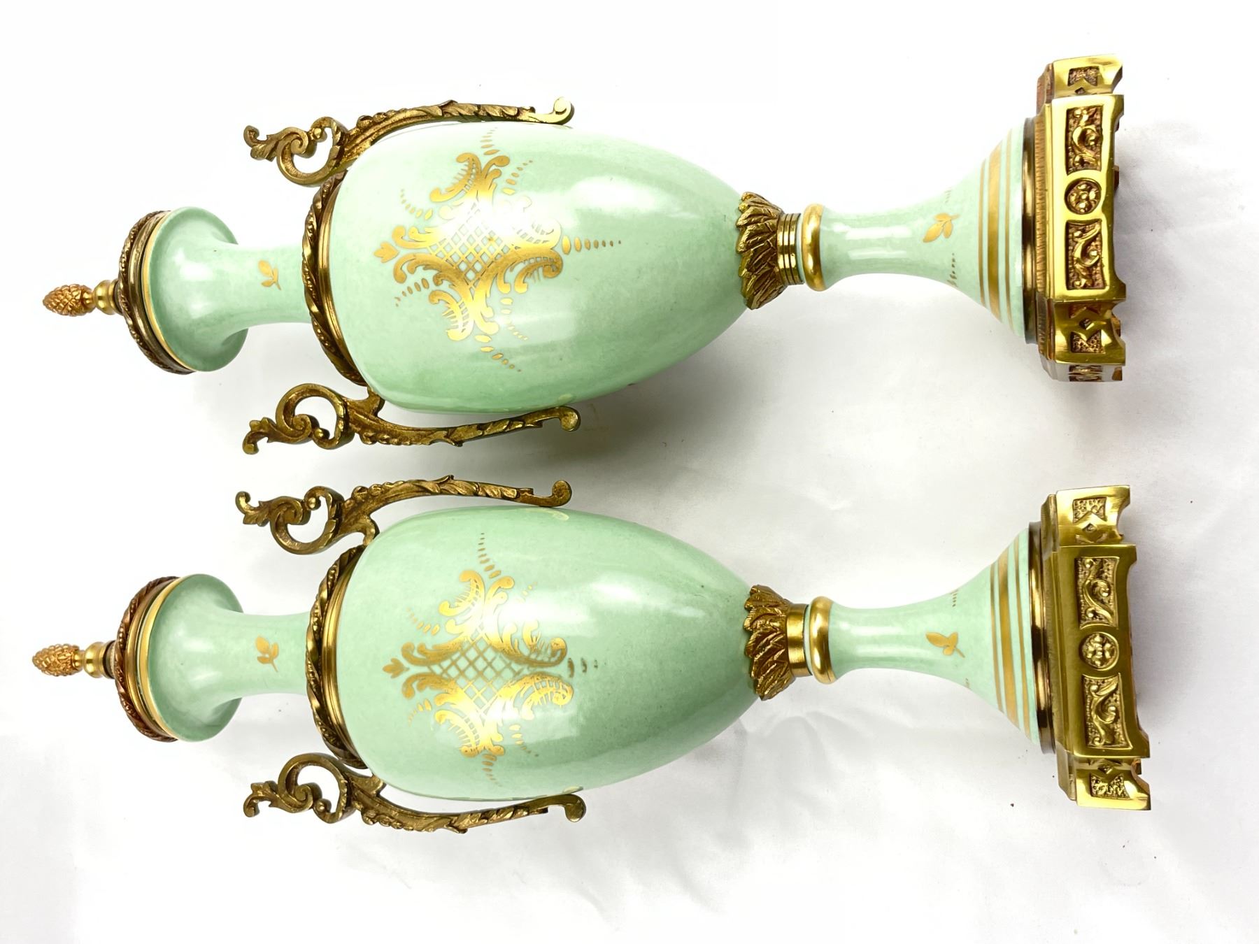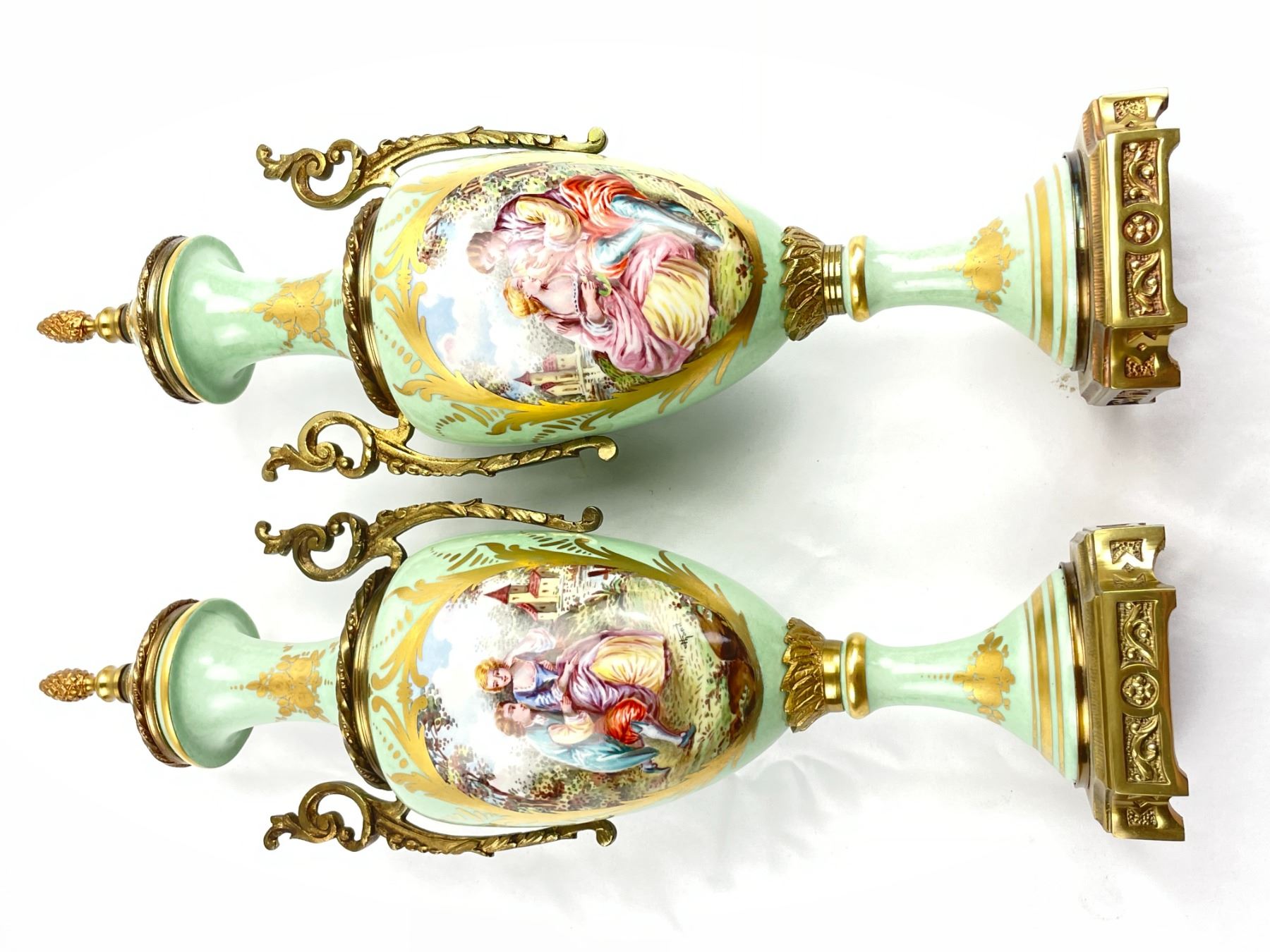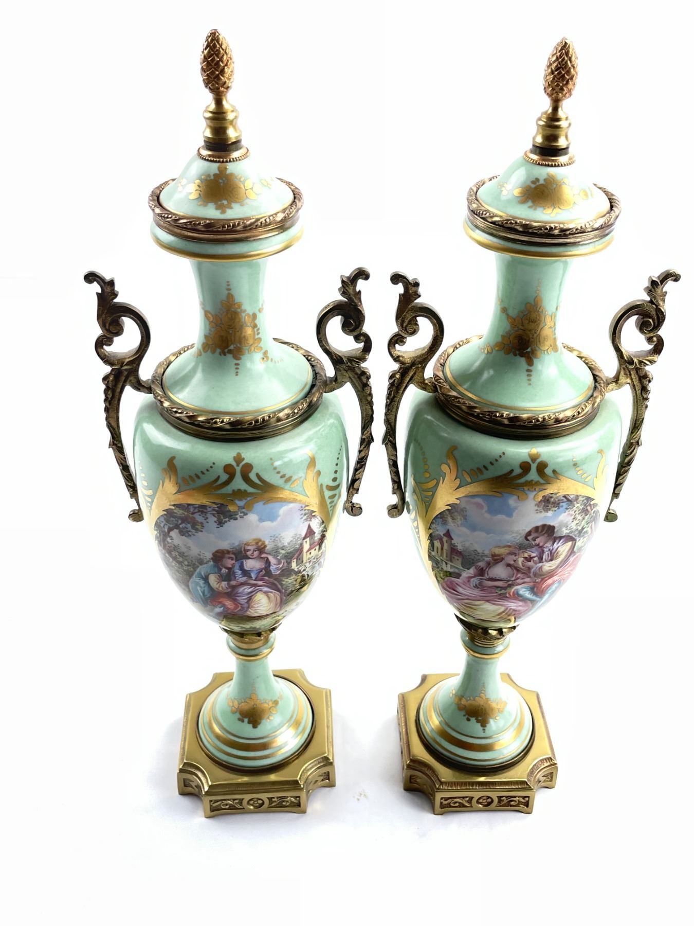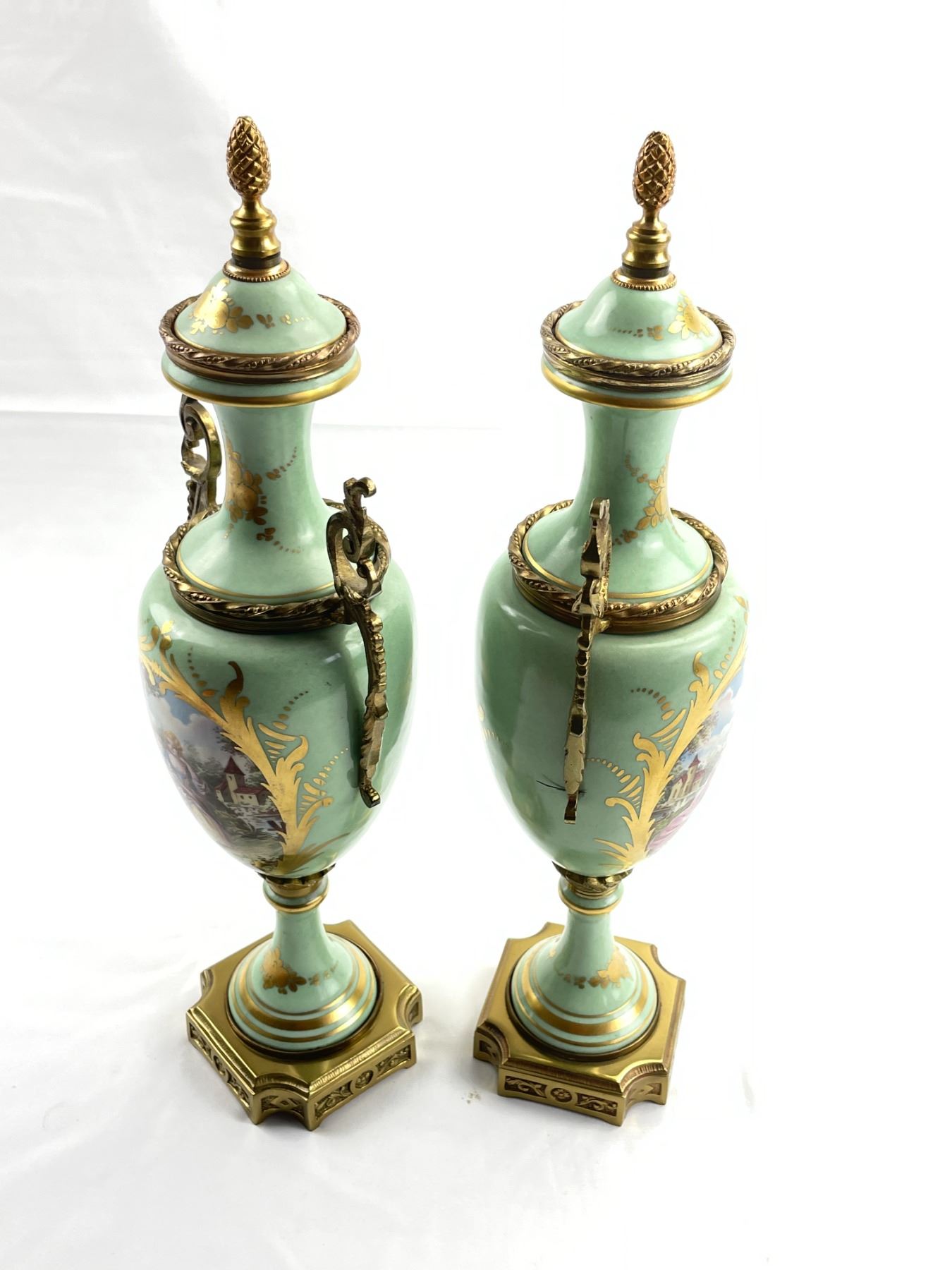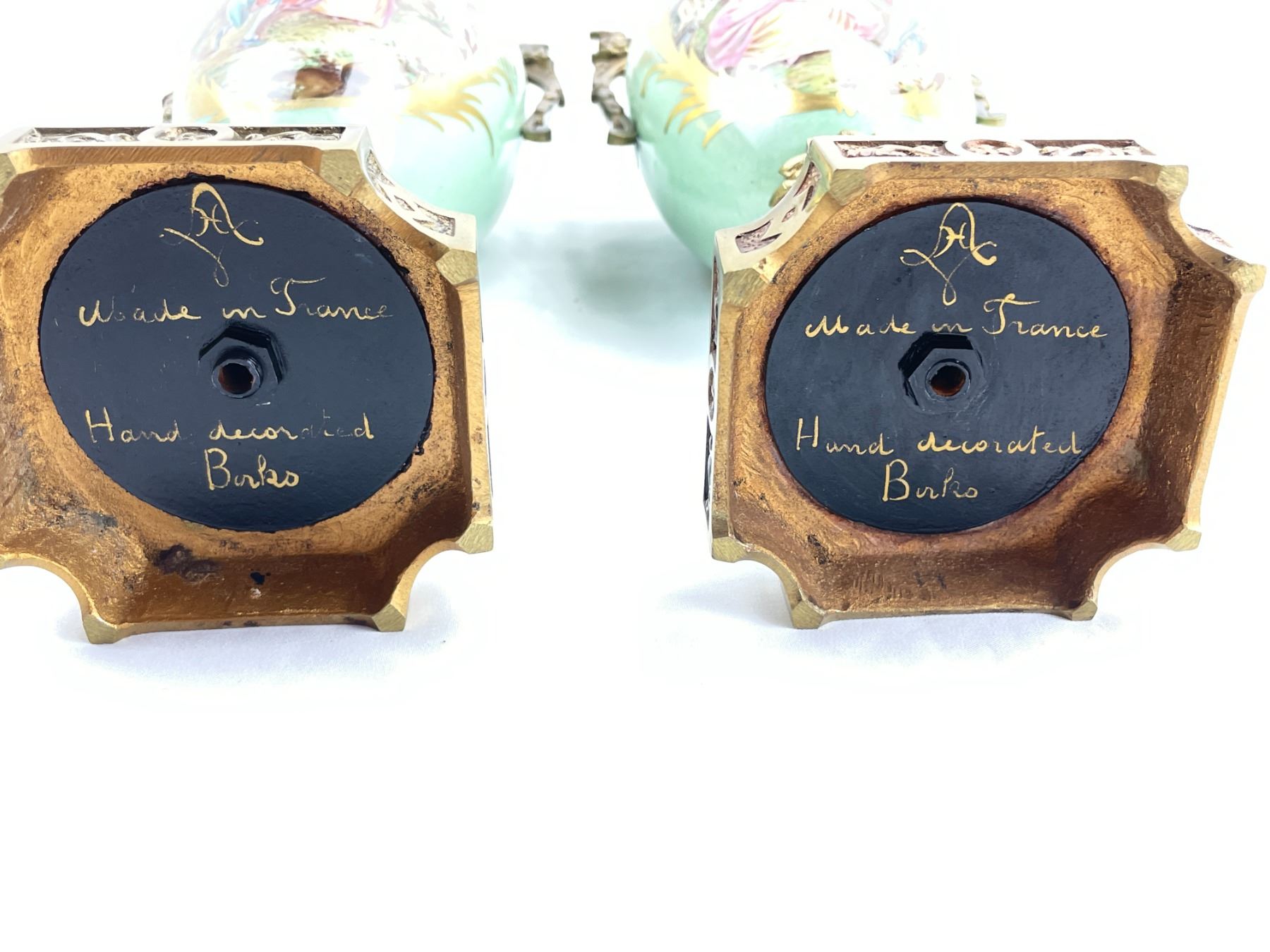 Hand decorated Birks Vases each 15.5" tall. In excellent condition