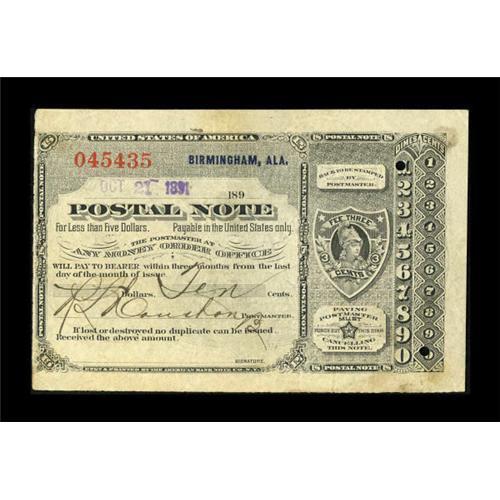 Birmingham, AL- Postal Note 10¢ Oct. 21, 1891