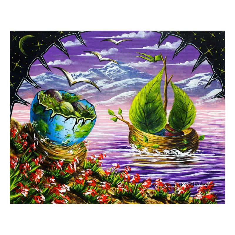 "Birth" is an original painting oil on canvas by Eugene Poliarush. The piece is hand signed and comes with a letter of authenticity. Measures approximately 16" x 20". This piece requires special handling and may have a longer than usual turnaround.