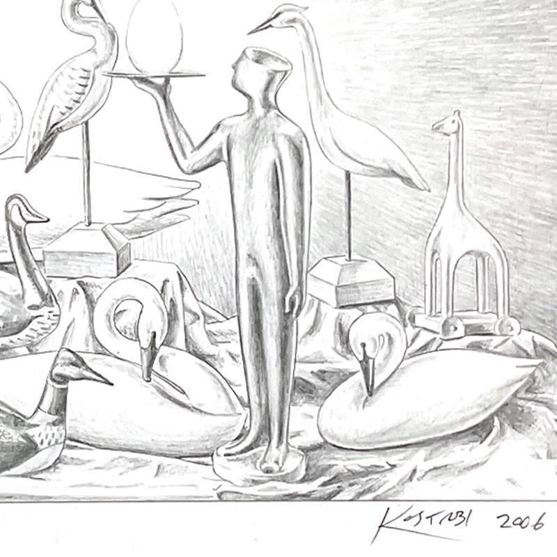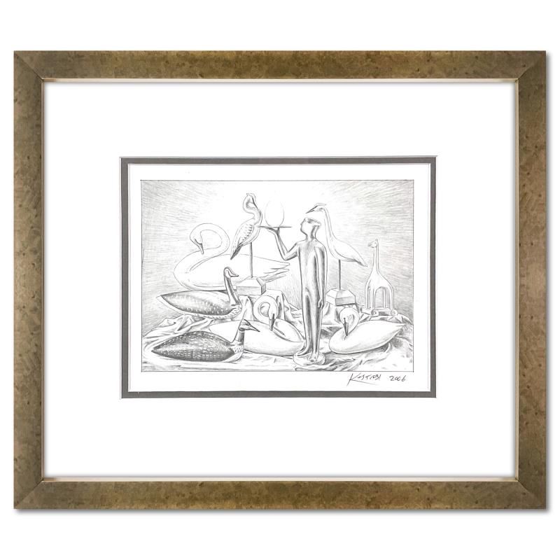 Birth of Ingenuity By Kostabi Original. "Birth of Ingenuity" is an original drawing on paper by Mark Kostabi, dated 2006 and hand signed by the artist. This piece comes custom framed. Includes Certificate of Authenticity. Measures approx. 17.5" x 15" (frame), 9" x 7" (image).