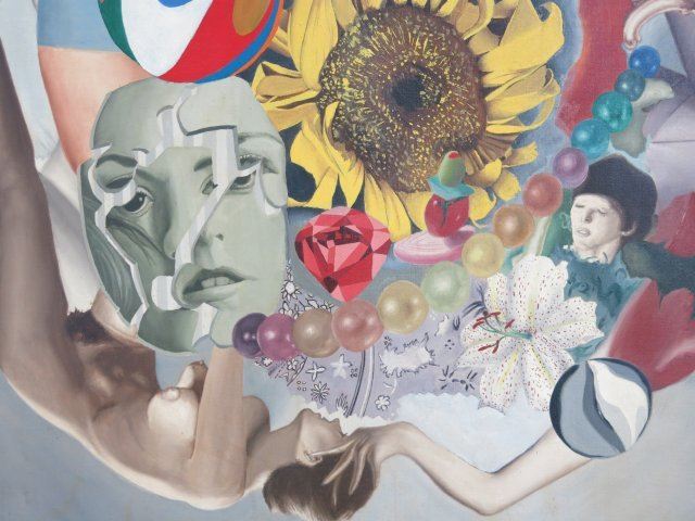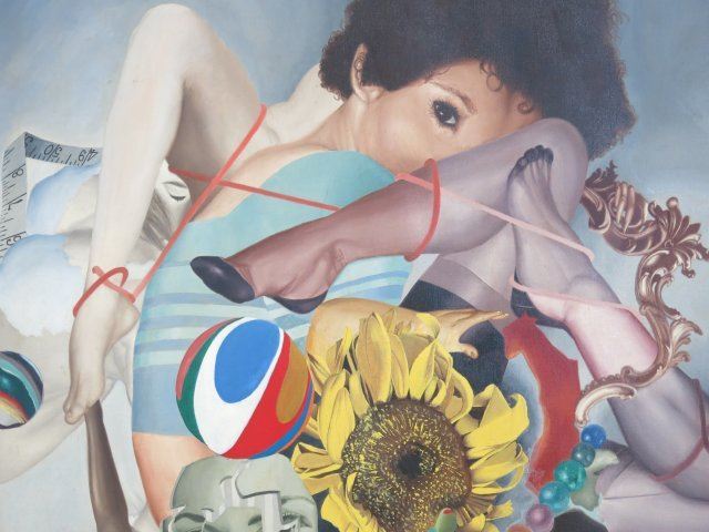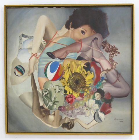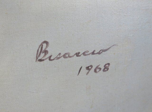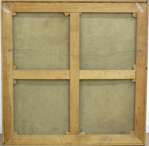 Oil on canvas. Framed. Signed & dated 1968 lower right. Approx 38" H x 38" W unframed, 39" H x 39" W.