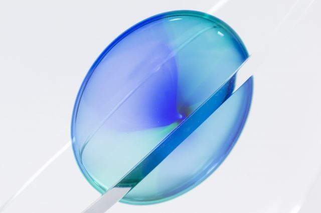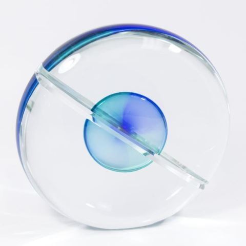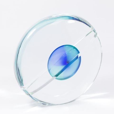 Clear glass with blue center. Dated 1993. Approx. 10 1/2" H. (6067)