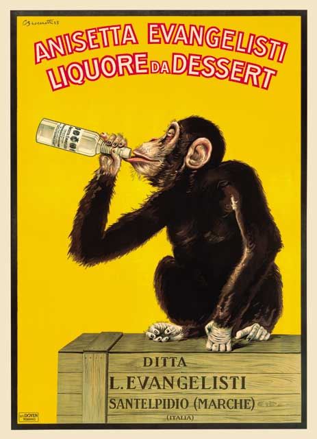 Artist: Carlo Biscaretti - Title: Anisetta Evangelisti - Medium: Fine Art Reproduction Giclee on Canvas - Image Size: Approximately 32 inches x 23 inches - Framed: Unframed on Unstretched Canvas - Biscaretti was an industrial designer who produced only a handful of posters, most of them for the automotive industry between 1920 and 1930