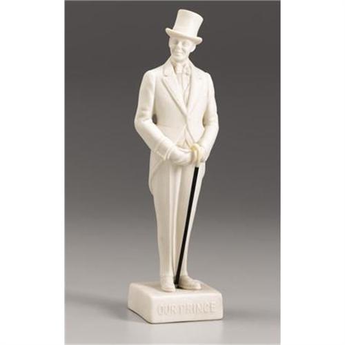 <B>Biscuit Figure of Edward, Prince of Wales </B></I><BR><I>Circa 1922</B></I><BR><BR>After Bryant Baker, the smiling full-length figure wearing tails and a top hat and sporting a tortoiseshell cane, standing on a square pedestal, the front inscribed "Our Prince"-10 ¼ in.<BR><BR>Provenance:<BR>Purchased from Hope & Glory, London<BR><BR><b>Shipping:</b> Requires 3rd Party Shipping (<a target="_blank" href="http://www.heritageauctions.com/common/shipping.php">view shipping information</a>)