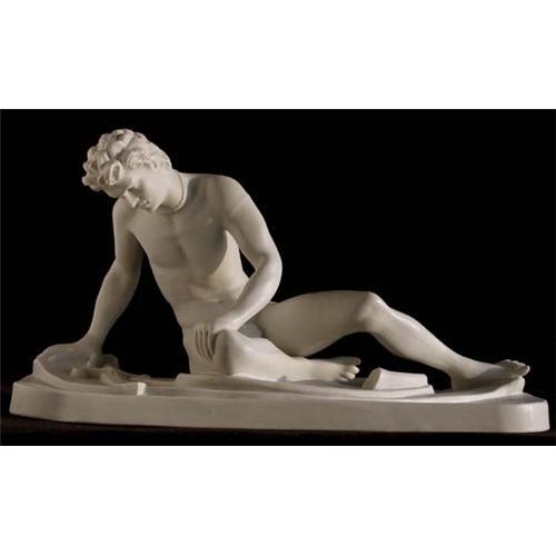 Beautiful white biscuit figurine of The Dying Gaul, after the original 3rd Century B.C. sculpture depicting a wounded Celtic warrier awaiting death. It is numbered on the base 4511. Biscuit is unglazed porcelain with a matt appearance mostly used for making small sculptures. Biscuit porcelain is sometimes referred to as bisque or parian. In very good condition as shown. Please ask questions, request additional photos and shipping costs before buying.