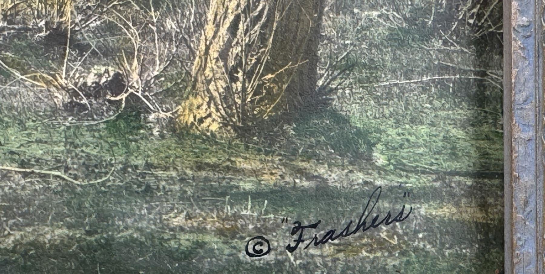 Hand Tinted. 8 1/4" by 18 1/8" framed.