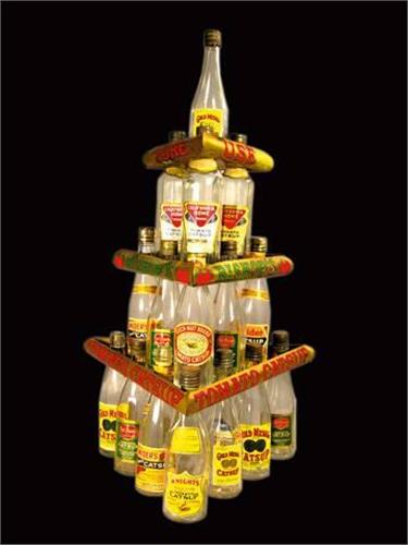Very Unusual Bishop's Catsup Store Display with 20 Various Different Old Catsup Bottles. Tin Shelves show some Rust and Discoloration. 32 inches tall.