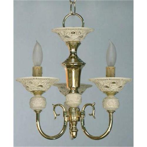 Height: 13" (Body) Width: 13" Extension: N/A Bulb: 3 - 60W Candelabra This mini chandelier is featured in Polished Brass with Fine Bisque Porcelain. Only the highest quality solid brass parts are used. CHAIN: 2ft. supplied Available Finishes Polished Brass Click to Enlarge <BR>Free Shipping in the continental US