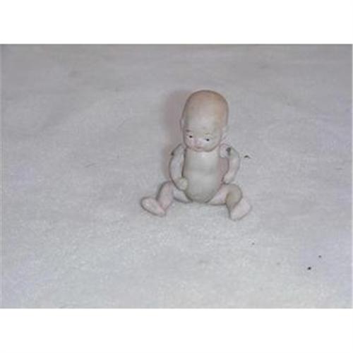 Porcelain bisque doll. 3 1/2" long with movable arms and legs. Written in ink on back won by "so and so" Oct, 31, 1931.
