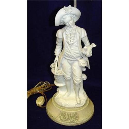 <tr><td>Title:Bisque Man Roses Dove Figural Lamp Sculpture</td></tr>