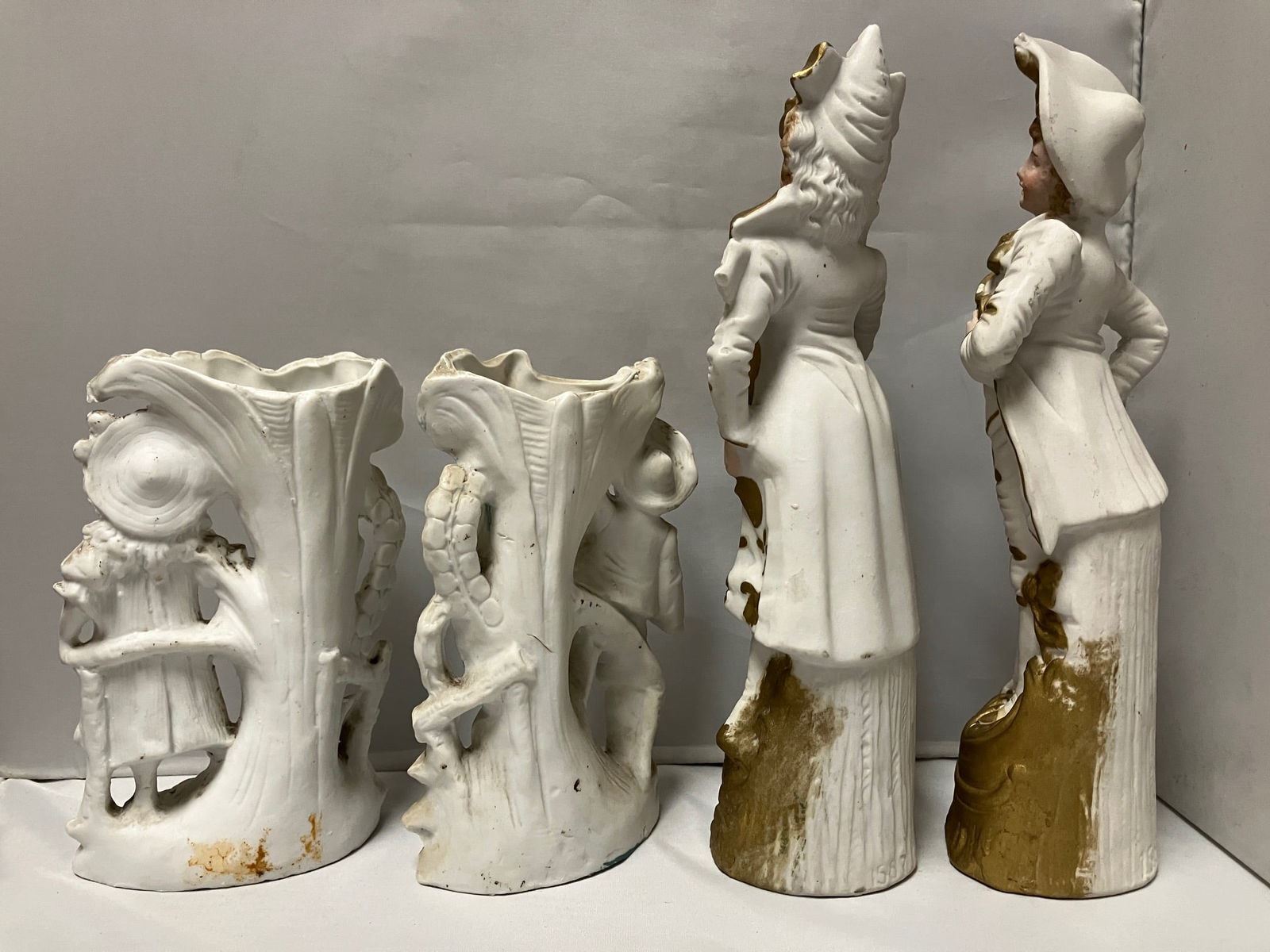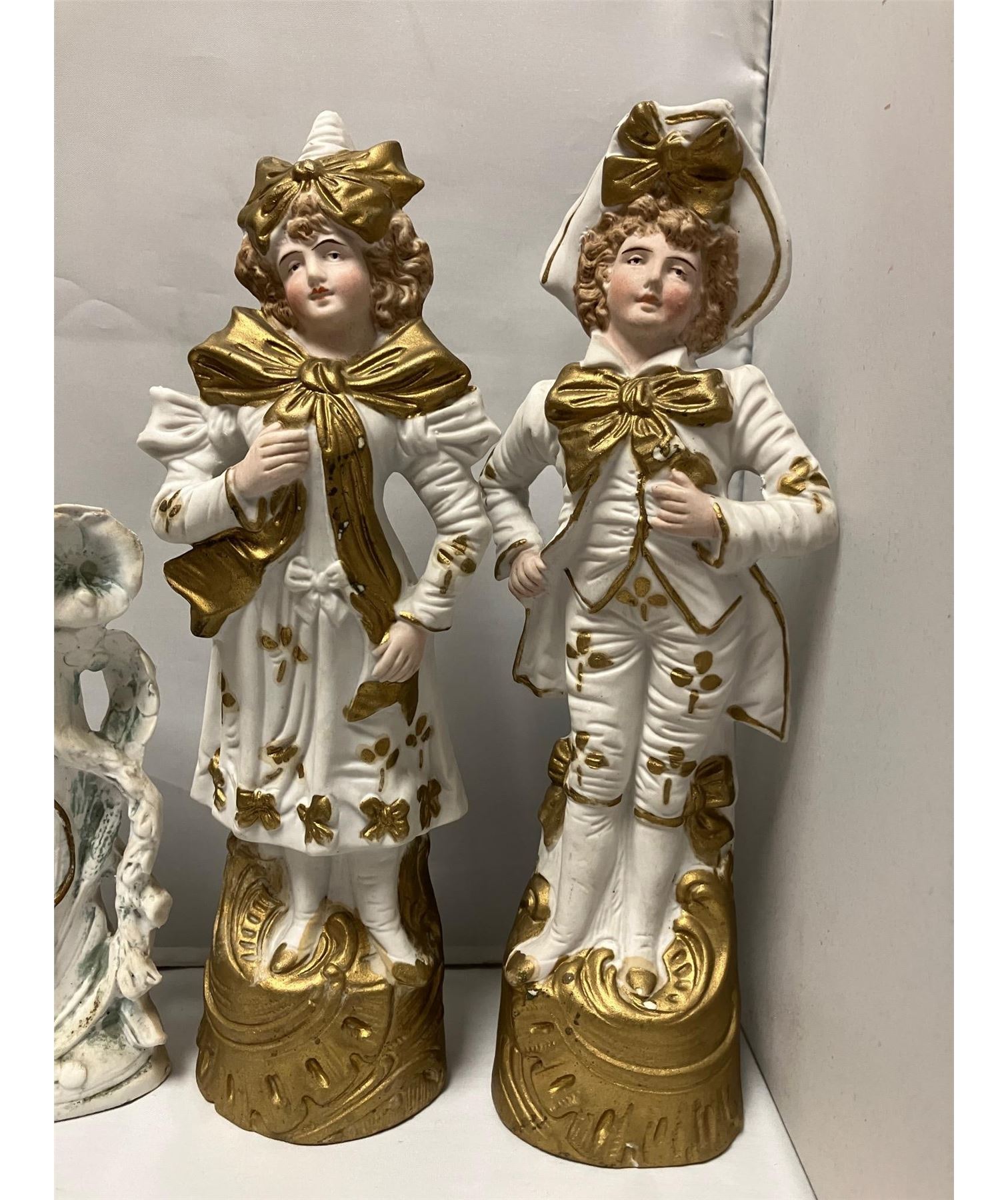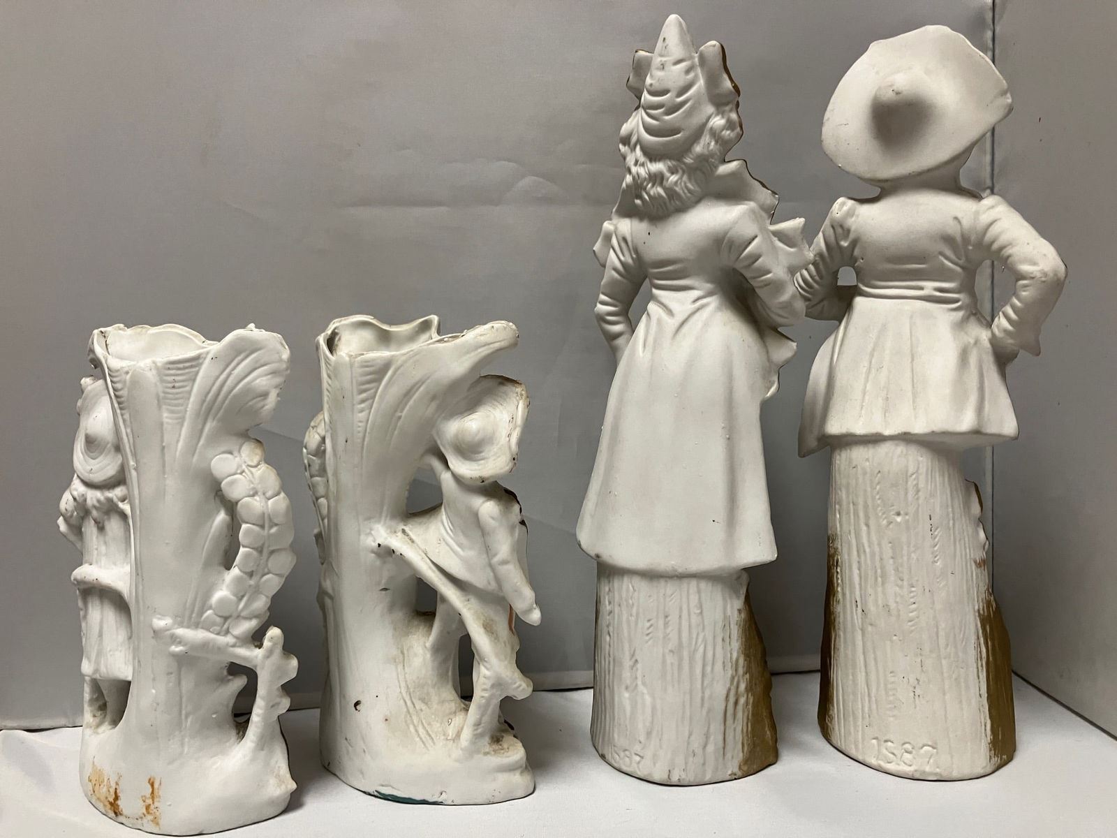 Two pairs totaling four figurines as seen in photos. The smaller are also vases. Marked and condition as seen in photos. Tallest approx 10" H.