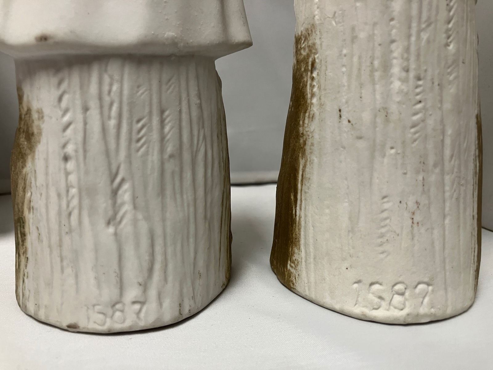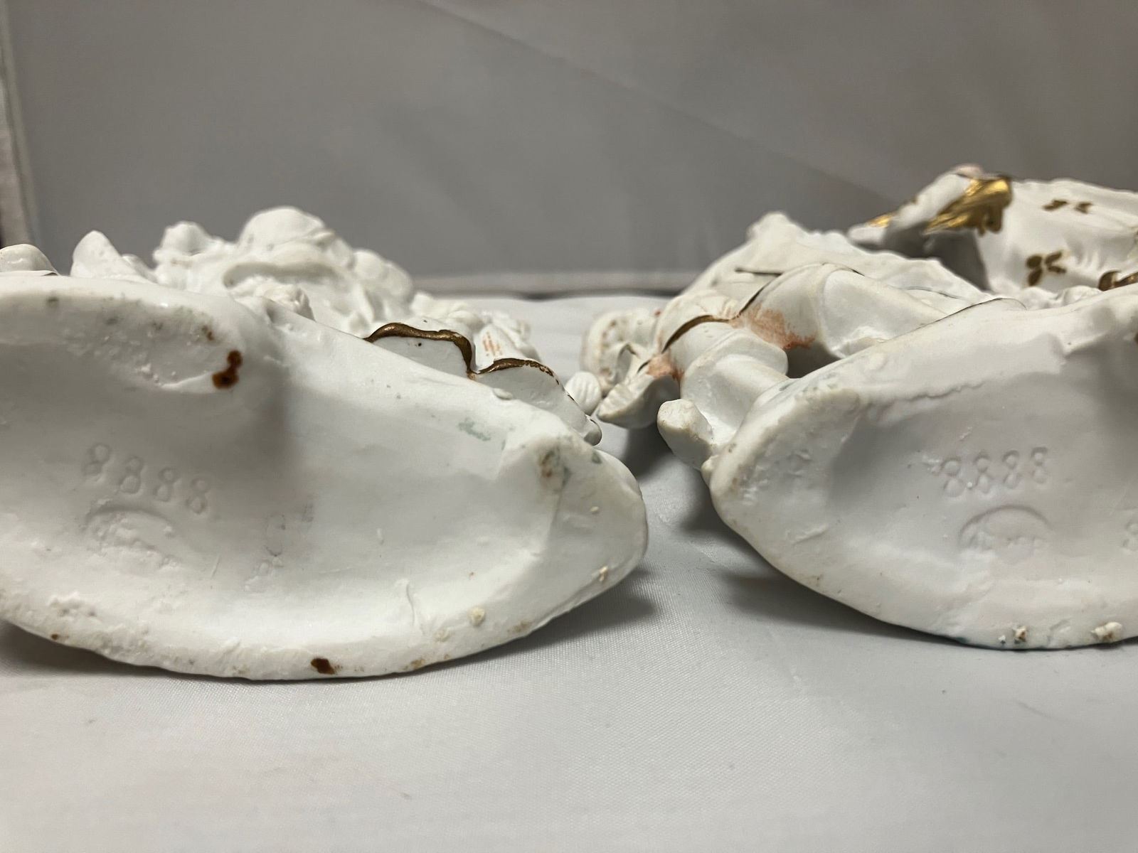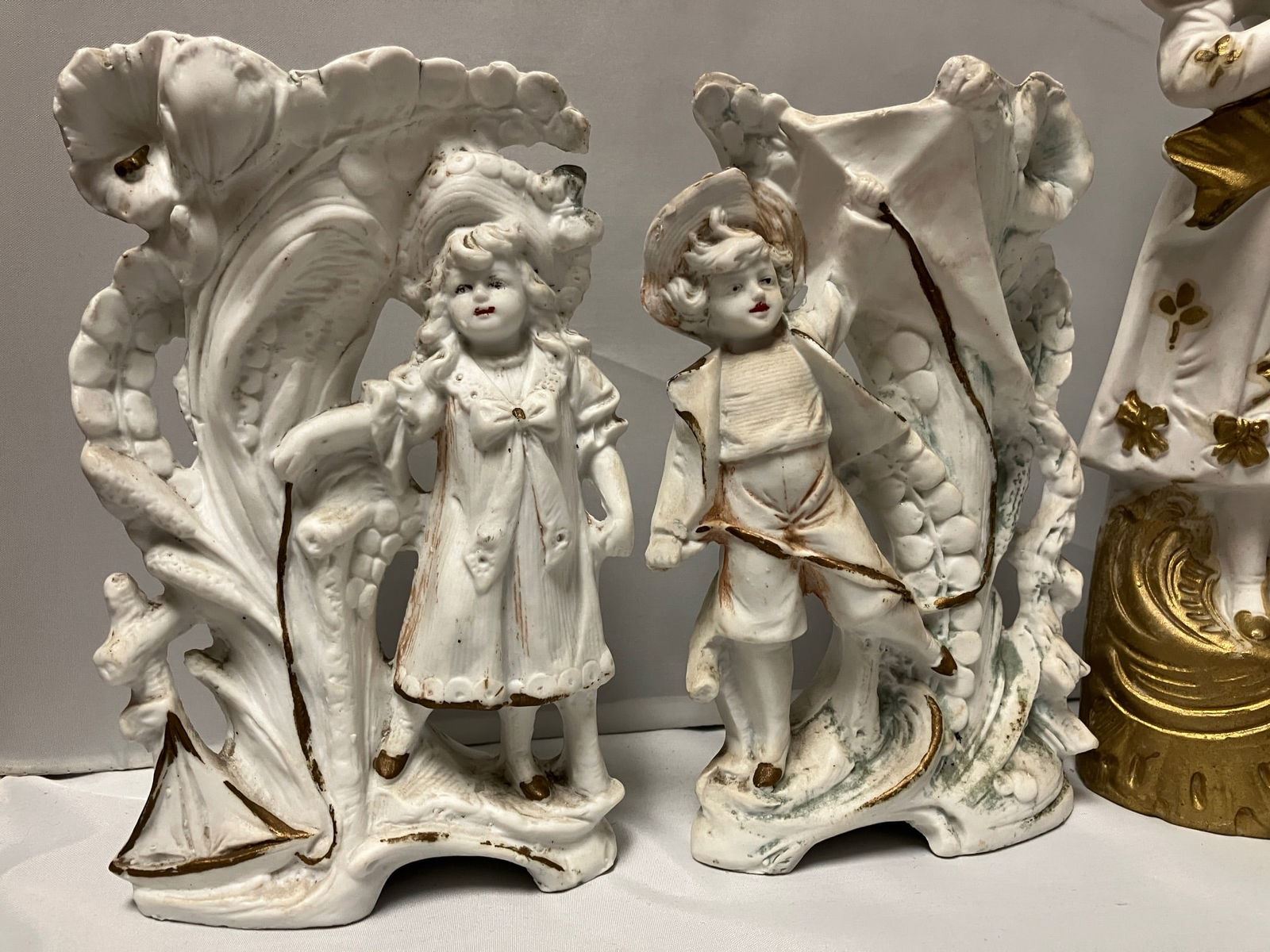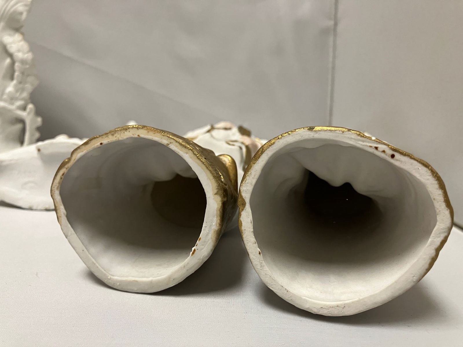 Two pairs totaling four figurines as seen in photos. The smaller are also vases. Marked and condition as seen in photos. Tallest approx 10" H.