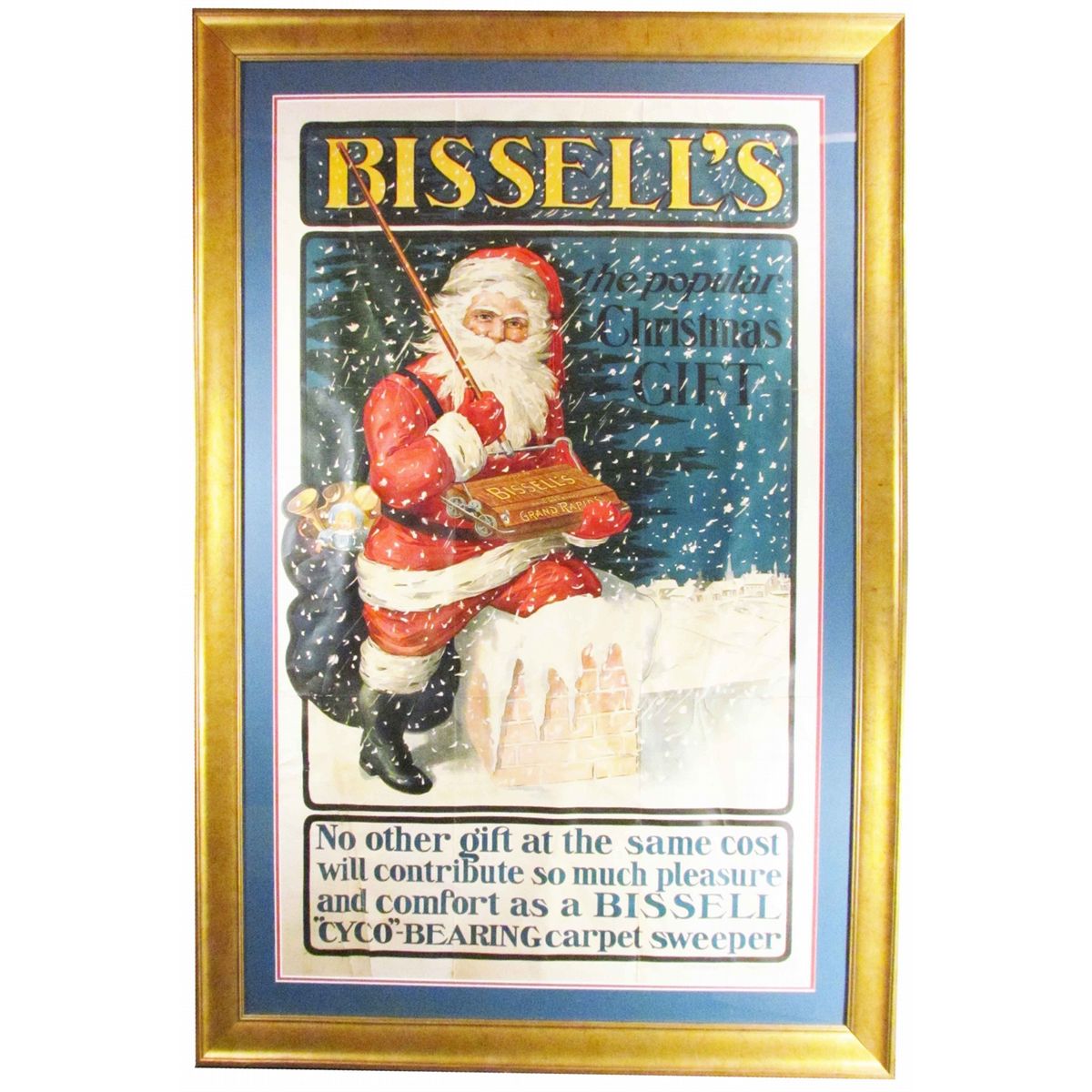 Bissell's Paper poster entitled "The Popular Christmas Gift" Michigan Litho Co. Grand Rapids. Fold creases and very slight age discoloration at bottom, otherwise very good condition. Framed under glass. 31 X 51 inches, image only.