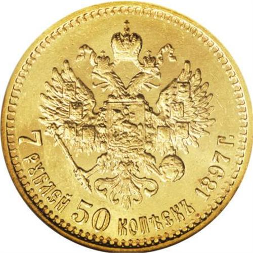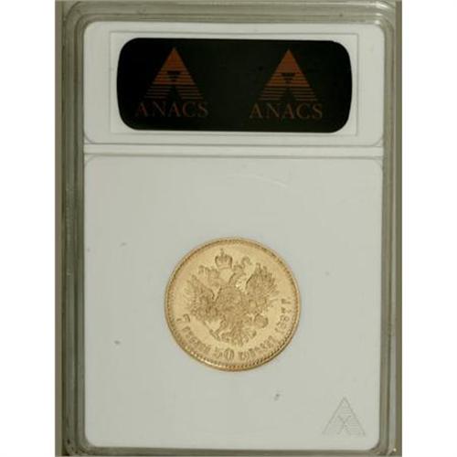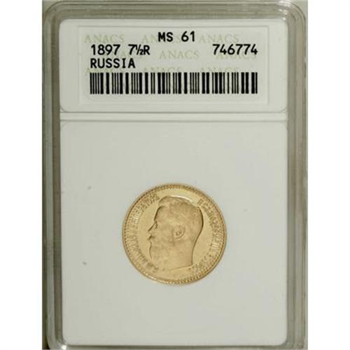 <B>Nicholas II. Gold 7-1/2 Roubles 1897 A?, </B></I> Bit-17, KM63, MS61 ANACS. <BR><BR><b>Shipping:</b> Coins & Currency (<a target="_blank" href="http://www.heritageauctions.com/common/shipping.php">view shipping information</a>)