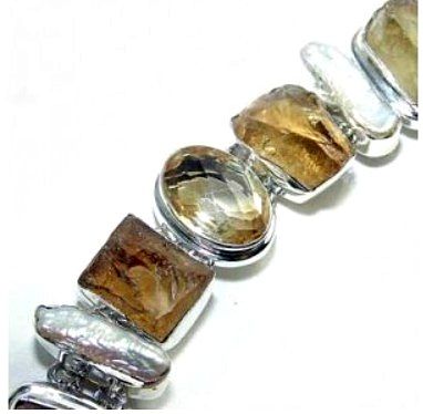 Silver & Biwa Pearl & Citrine Bracelet. Allow 6 to 8 weeks for delivery.
