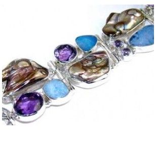 Silver & Biwa Pearl, Fire Opal and Amethyst Bracelet. Items are hand made as ordered so please allow 6 to 8 weeks for delivery.