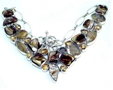 Silver and Biwa Pearl, Golden Rutilated Quartz & Citrine Necklace. Allow 6 to 8 weeks for delivery.