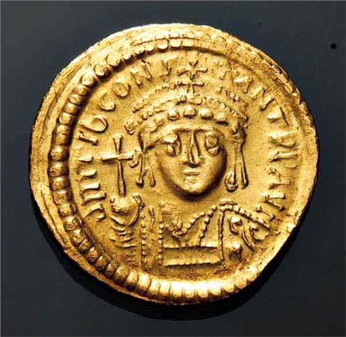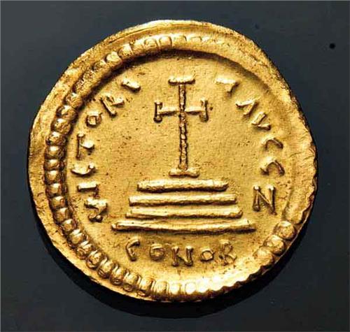 Monete Bizantine - Tiberio Costantino (578-582 d.C.) - Solido databile agli anni 579-582 d.C. - Metallo: Au - Zecca: Costantinopoli - Diritto: effigie di Tiberio Costantino di fronte con globo crucigero - Rovescio: croce potenziata su un basamento di quattro gradini - gr. 4,41 - Non comune