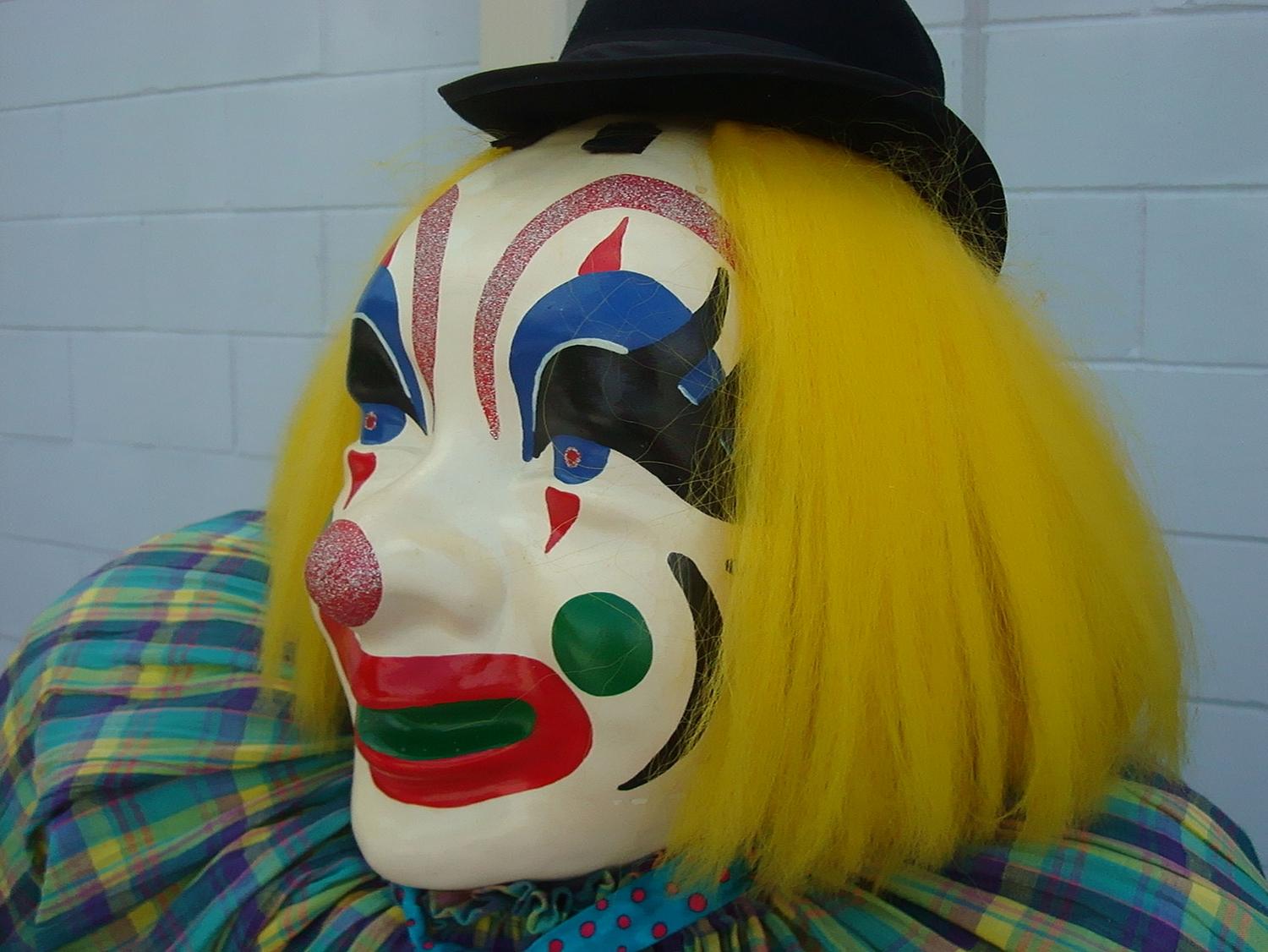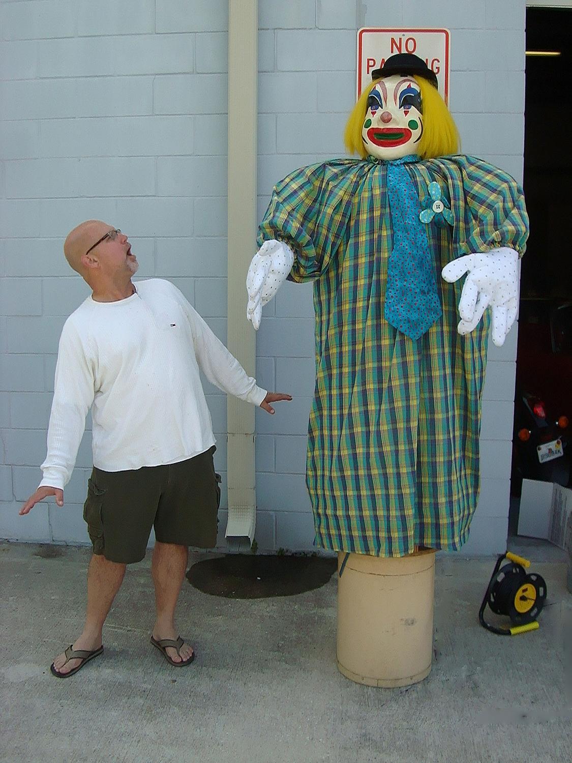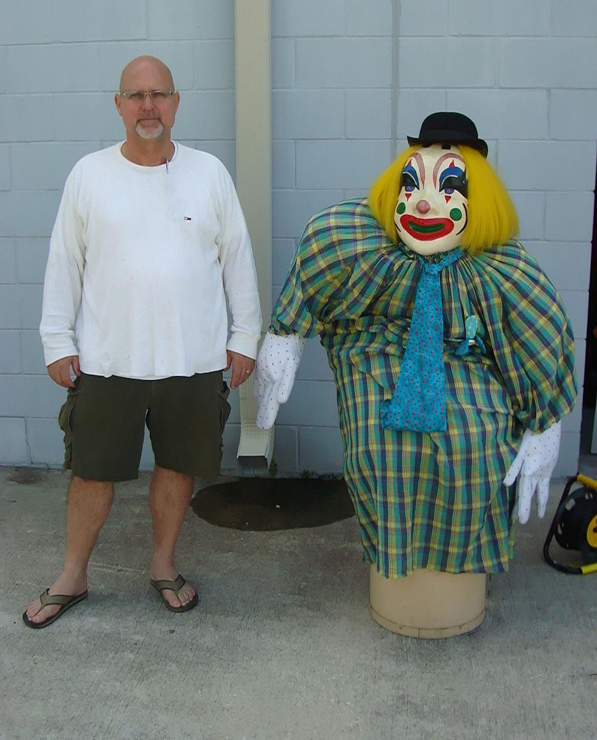 Early Carnival Circus Mechanical Clown. This Clown certainly grabs attention and a crowd with his rather unique continuous up and down motion which operates easily with any small air compressor. He rises to a colossal height of 85 inches during this process and turns heads and ears with the swooshing sound he makes. His tailored attaire is made of period muslin cotton and his face and features appear to be skillfully hand painted. Small children back in the day had to be traumatized by this clown as well as adults. And you can bet if author Stephen King owned a Clown it would be this one.