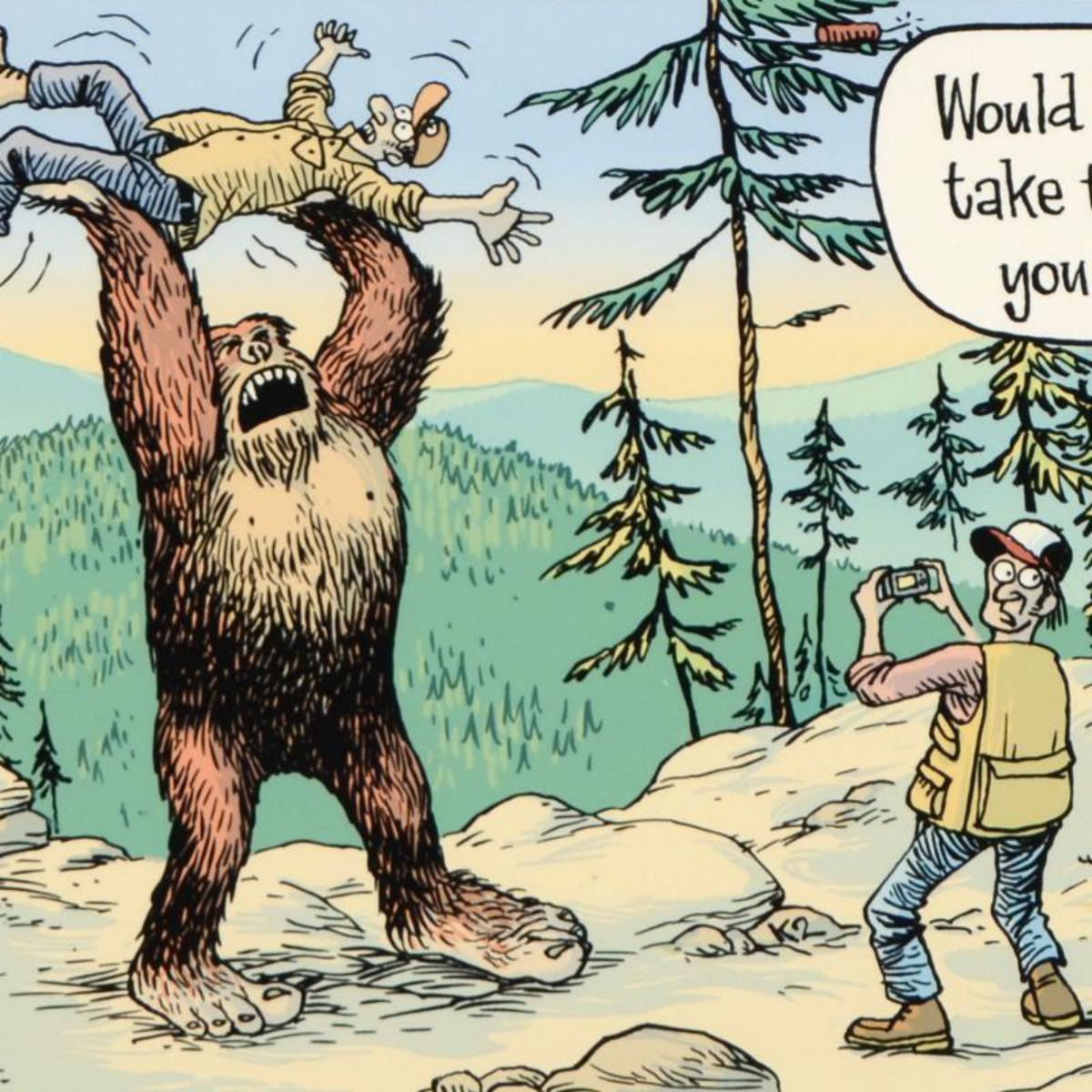 Enter a surreal and satirical world of twisted imagination and award winning creativity. "Big Day in the Woods" is a limited edition giclee on paper by Dan Piraro, creator of the critically acclaimed and award winning comic strip, Bizarro! This piece is framed, numbered and hand signed by the artist! Includes Certificate of Authenticity! Measures approx. 22" x 15" (with frame), 15" x 8" (image). Reference #: 214187.