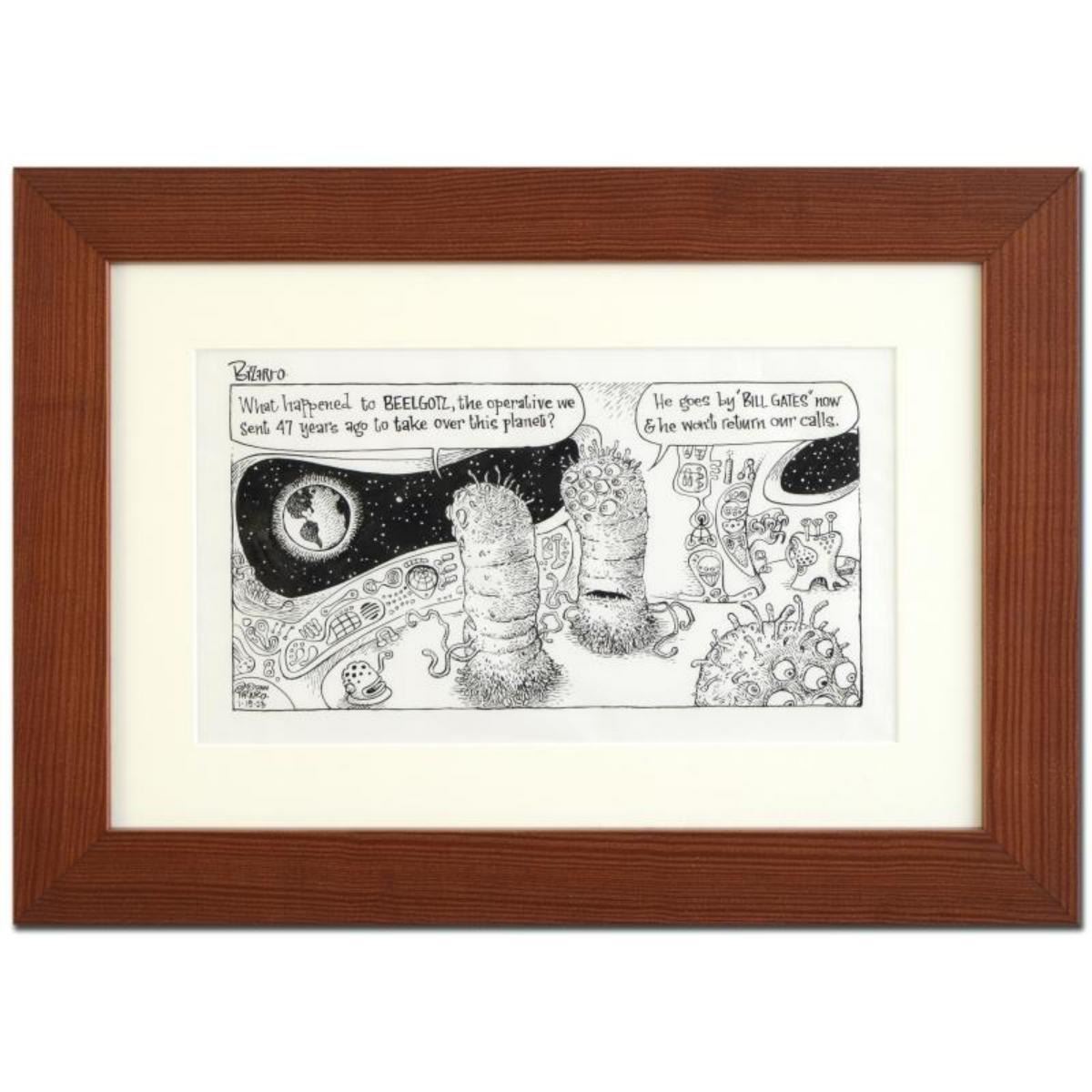 Bizarro - "Bill Gates" is a Framed Original Pen & Ink Drawing by Dan Piraro, Hand Signed by the Arti