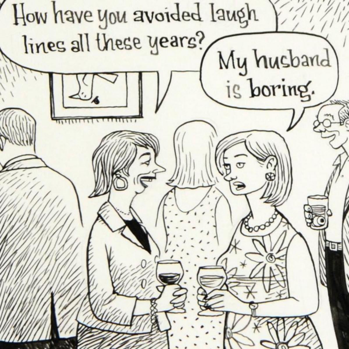 Bizarro! "Boring Hubby" is a Framed Original Pen & Ink Drawing by Dan Piraro, Hand Signed by the Art