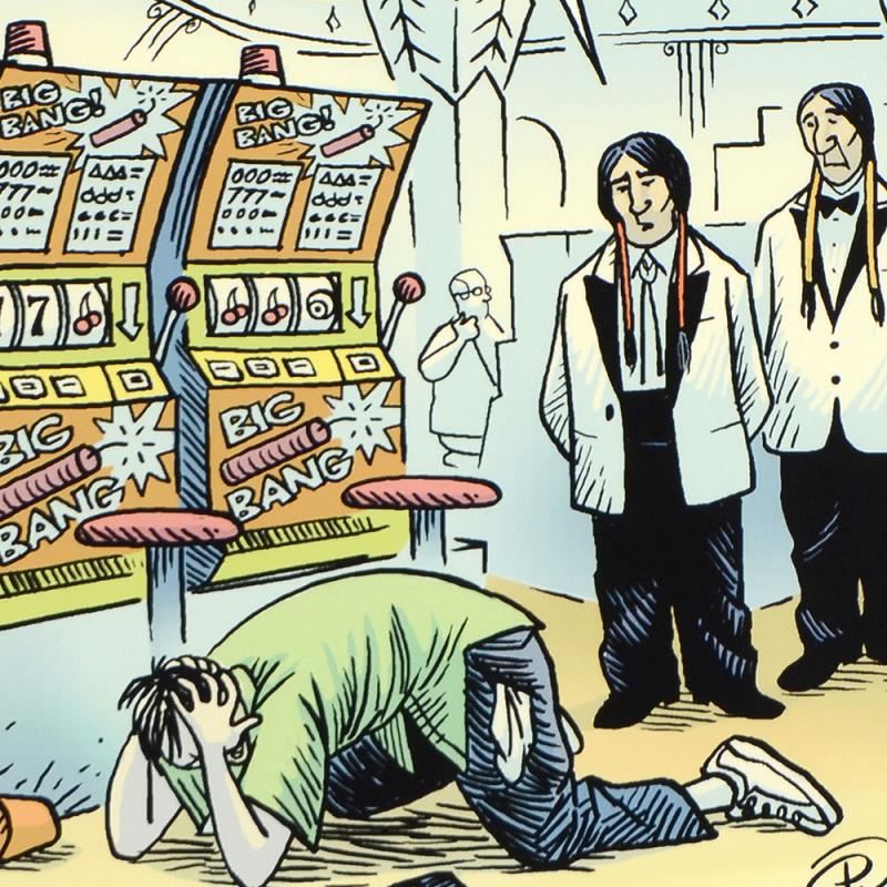"Casino Indians" is a limited edition giclee on paper by Dan Piraro, creator of the critically acclaimed and award winning comic strip, Bizarro! This piece is numbered and hand signed by the artist and includes aletterof authenticity. Measures approximtely 12" x 10" (image).