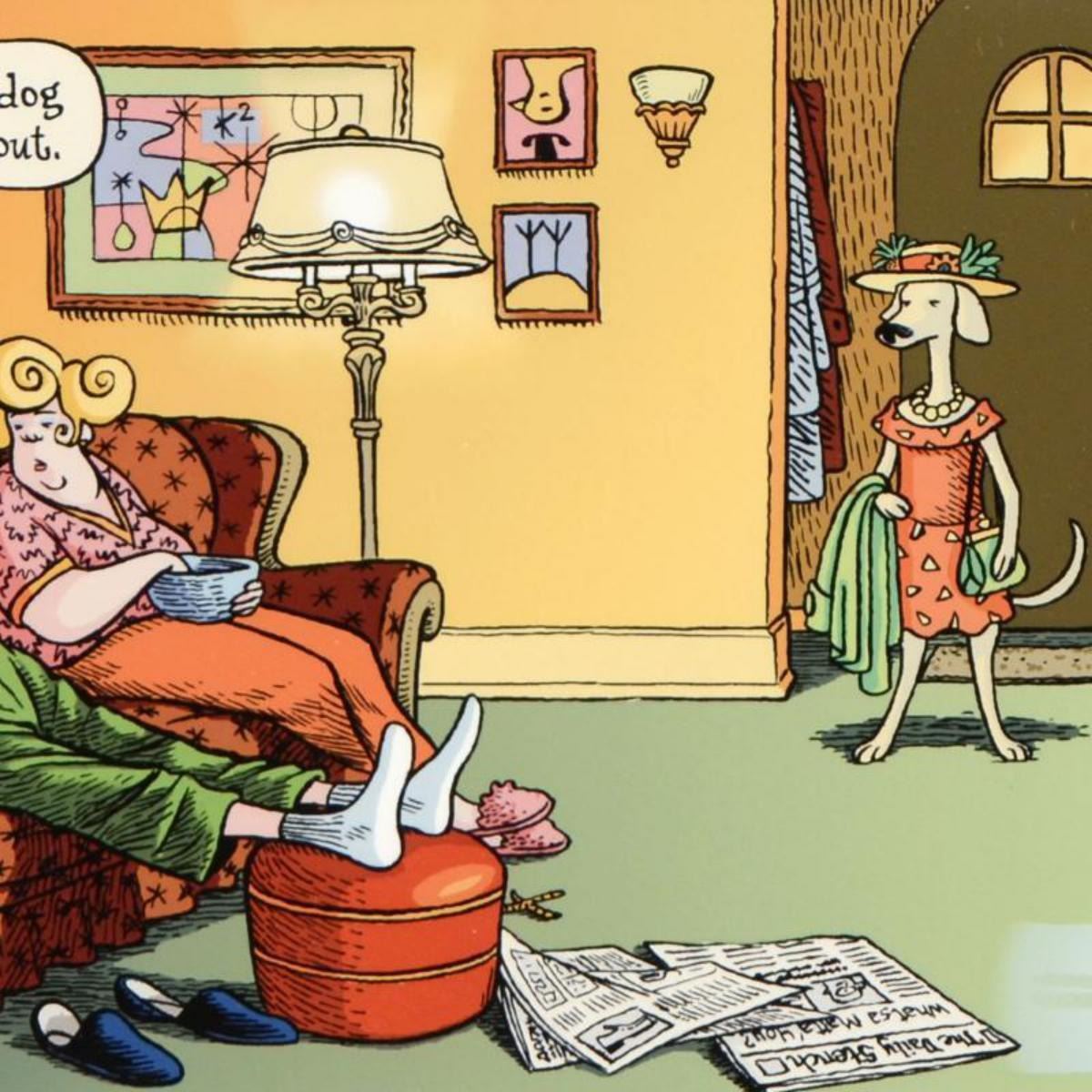 "Dog Goes Out" is a limited edition giclee on paper by Dan Piraro, creator of the critically acclaimed and award winning comic strip, Bizarro! This piece is numbered and hand signed by the artist and includes aletterof authenticity. Measures approximtely 8" x 15" (image). Reference #: 240078.