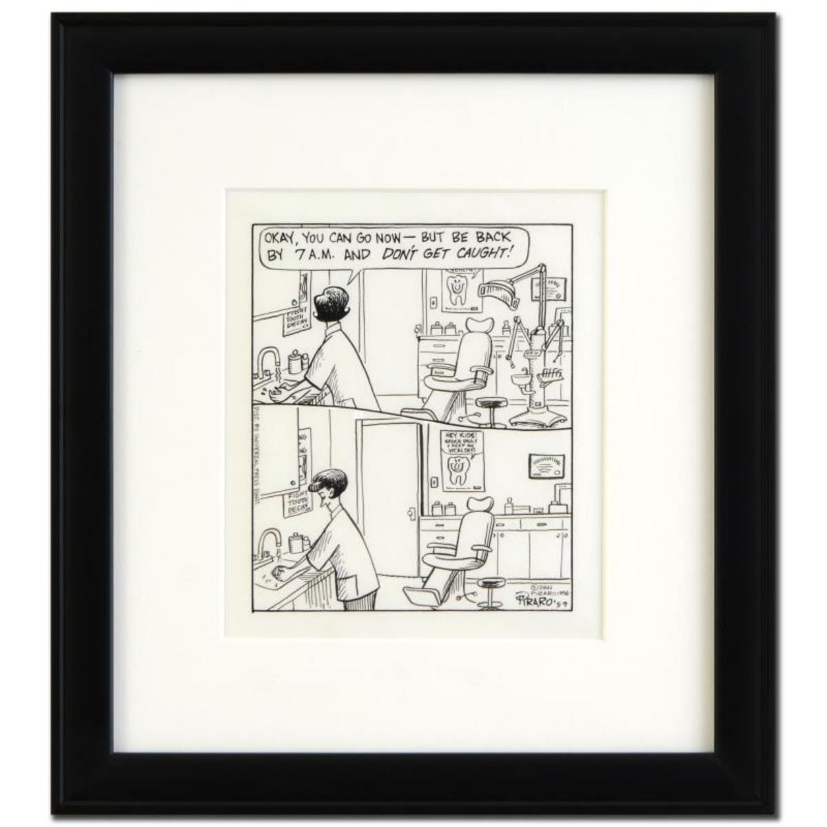 Enter a surreal and satirical world of twisted imagination and award winning creativity. "Don't Get Caught" is an original pen & ink drawing on paper by Dan Piraro, creator of the critically acclaimed and award winning comic strip, Bizarro! This piece is hand signed and comes framed. Includes Certificate of Authenticity! Measures approx. 13" x 14" (with frame), 6" x 7" (image). Reference #: 218058