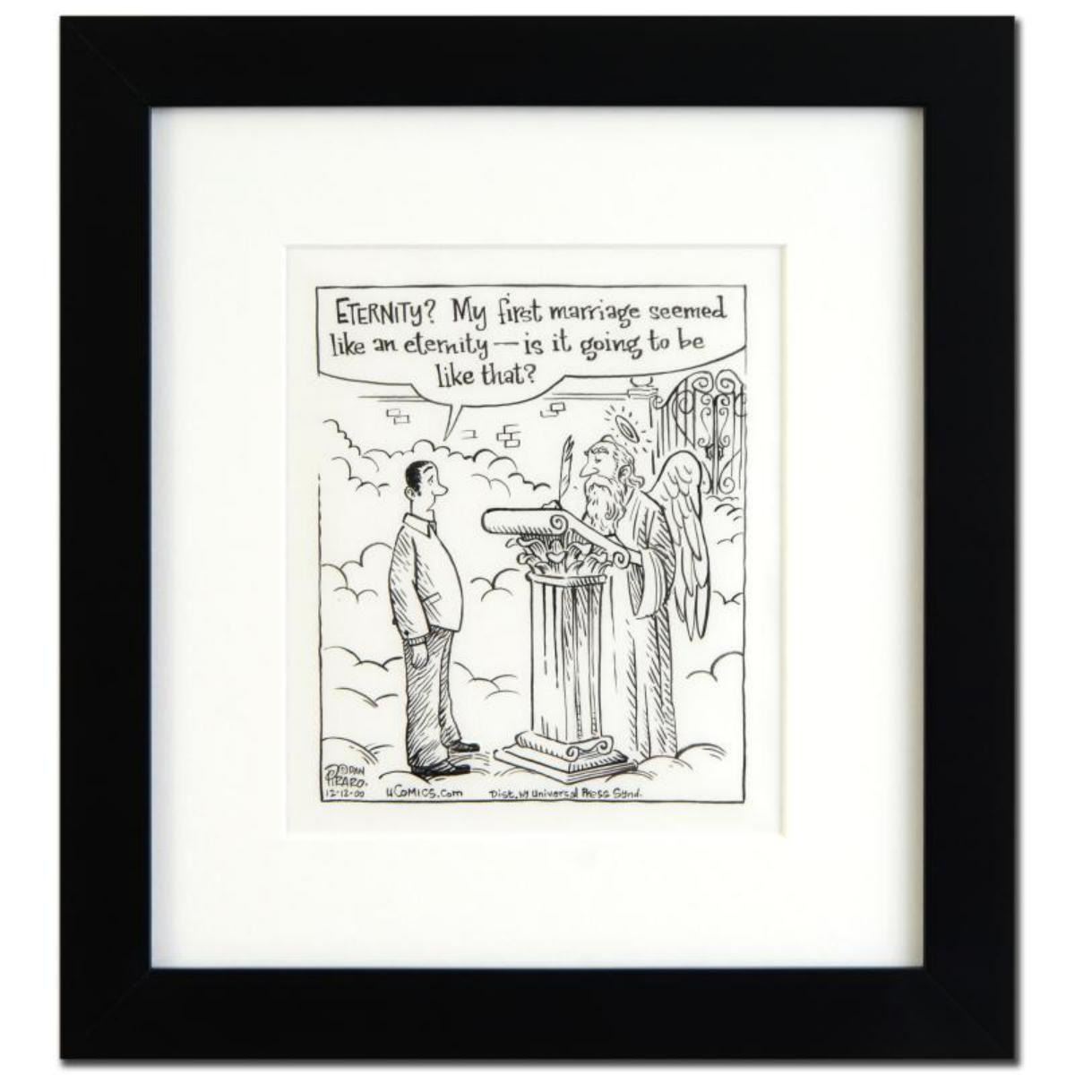 Enter a surreal and satirical world of twisted imagination and award winning creativity. "Eternity" is an original pen & ink drawing on paper by Dan Piraro, creator of the critically acclaimed and award winning comic strip, Bizarro! This piece is hand signed and comes framed. Includes Certificate of Authenticity! Measures approx. 13" x 14" (with frame), 6" x 7" (image). Reference #: 218034