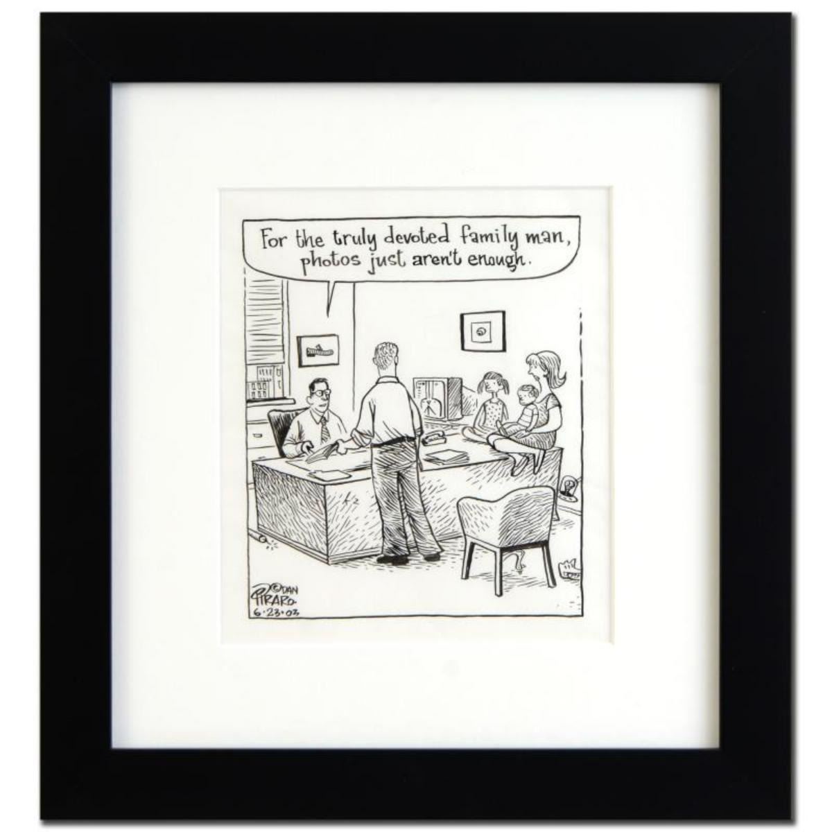 Enter a surreal and satirical world of twisted imagination and award winning creativity. "Family Man" is an original pen & ink drawing on paper by Dan Piraro, creator of the critically acclaimed and award winning comic strip, Bizarro! This piece is hand signed and comes framed. Includes Certificate of Authenticity! Measures approx. 13" x 14" (with frame), 6" x 7" (image). Reference #: 218061