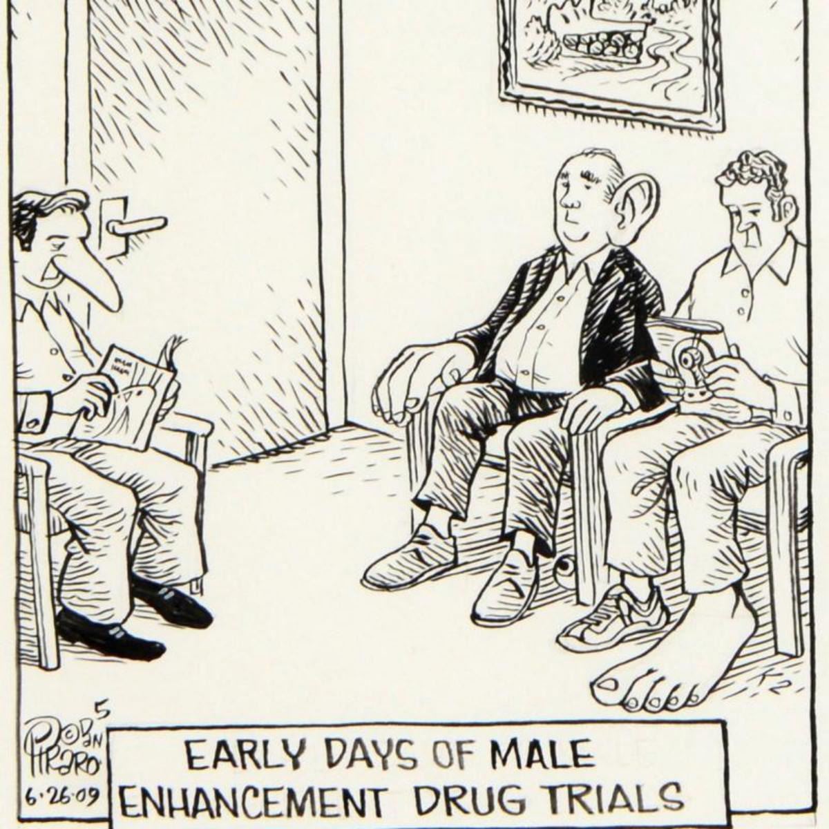 Bizarro! "Male Enhancement" is a Framed Original Pen & Ink Drawing by Dan Piraro, Hand Signed by the