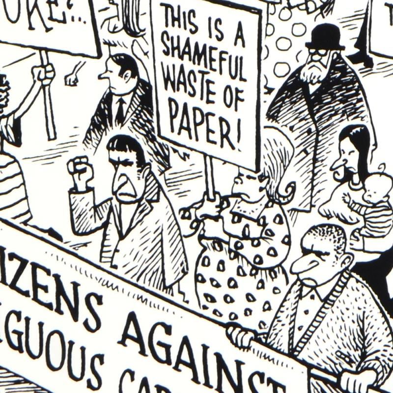 "March Against Ambiguity" is a limited edition giclee on paper by Dan Piraro, creator of the critically acclaimed and award winning comic strip, Bizarro. This piece is numbered and hand signed by the artist and includes a letterof authenticity. Measures approximtely 12" x 10" (image).