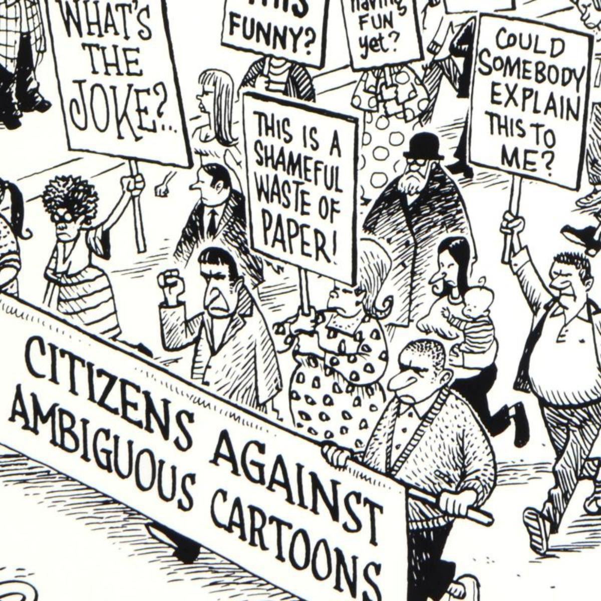 Enter a surreal and satirical world of twisted imagination and award winning creativity. "March Against Ambiguity" is a limited edition giclee on paper by Dan Piraro, creator of the critically acclaimed and award winning comic strip, Bizarro! This piece is framed, numbered and hand signed by the artist! Includes Certificate of Authenticity! Measures approx. 17" x 19" (with frame), 9.5" x 11.5" (image). Reference #: 214180.