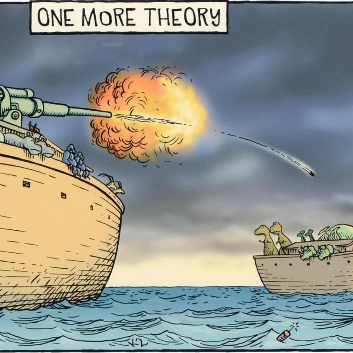 "One More Theory" is a limited edition giclee on paper by Dan Piraro, creator of the critically acclaimed and award winning comic strip, Bizarro! This piece is numbered and hand signed by the artist and includes aletterof authenticity. Measures approximtely 8" x 15" (image).