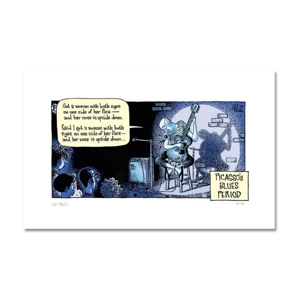 "Picasso Blues" is a limited edition giclee on paper by Dan Piraro, creator of the critically acclaimed and award winning comic strip, Bizarro! This piece is numbered and hand signed by the artist and includes aletterof authenticity. Measures approximtely 8" x 15" (image). Reference #: 240094.
