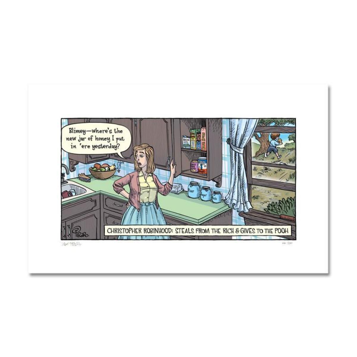 "Pooh" is a limited edition giclee on paper by Dan Piraro, creator of the critically acclaimed and award winning comic strip, Bizarro! This piece is numbered and hand signed by the artist and includes aletterof authenticity. Measures approximtely 8" x 15" (image). Reference #: 240095.