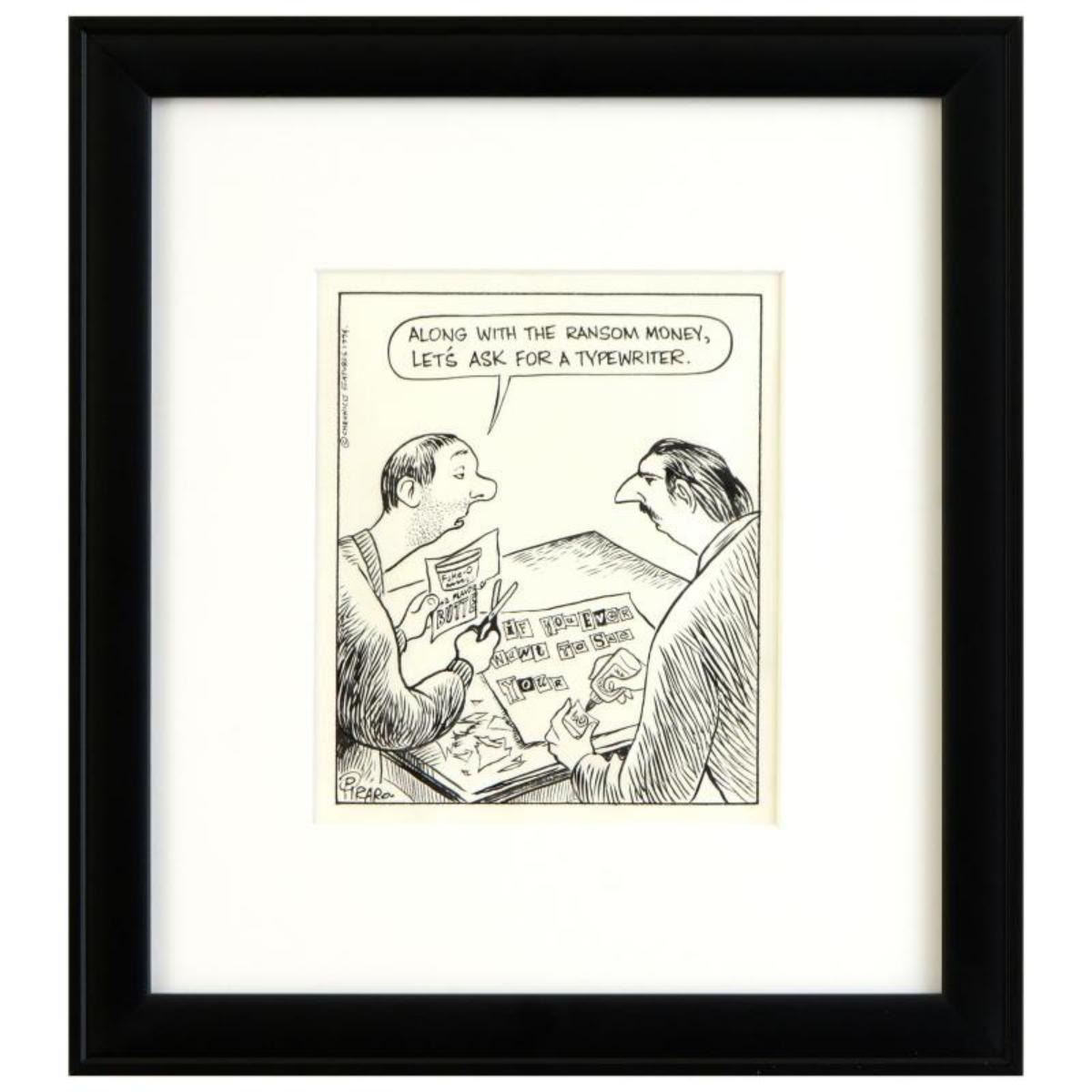 Enter a surreal and satirical world of twisted imagination and award winning creativity. "Ransom Note" is an original pen & ink drawing on paper by Dan Piraro, creator of the critically acclaimed and award winning comic strip, Bizarro! This piece is hand signed and comes framed. Includes Certificate of Authenticity! Measures approx. 13" x 14" (with frame), 6" x 7" (image). Reference #: 218047