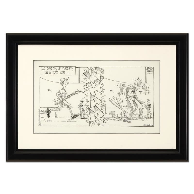 Enter a surreal and satirical world of twisted imagination and award winning creativity. "The Effects of Puberty" is an original pen & ink drawing on paper by Dan Piraro, creator of the critically acclaimed and award winning comic strip, Bizarro. This piece is hand signed and comes framed. Includes Letter of Authenticity! Measures approx. 20.5" x 14.5" (frame), 13" x 7" (image).