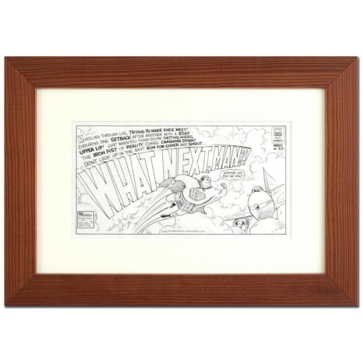 Enter a surreal and satirical world of twisted imagination and award winning creativity. "What's Next, Man?!" is an original pen & ink drawing on paper by Dan Piraro, creator of the critically acclaimed and award winning comic strip, Bizarro! This piece is hand signed and comes framed. Includes Certificate of Authenticity! Measures approx. 21.5" x 15" (with frame), 13" x 7" (image). Reference #: 218054