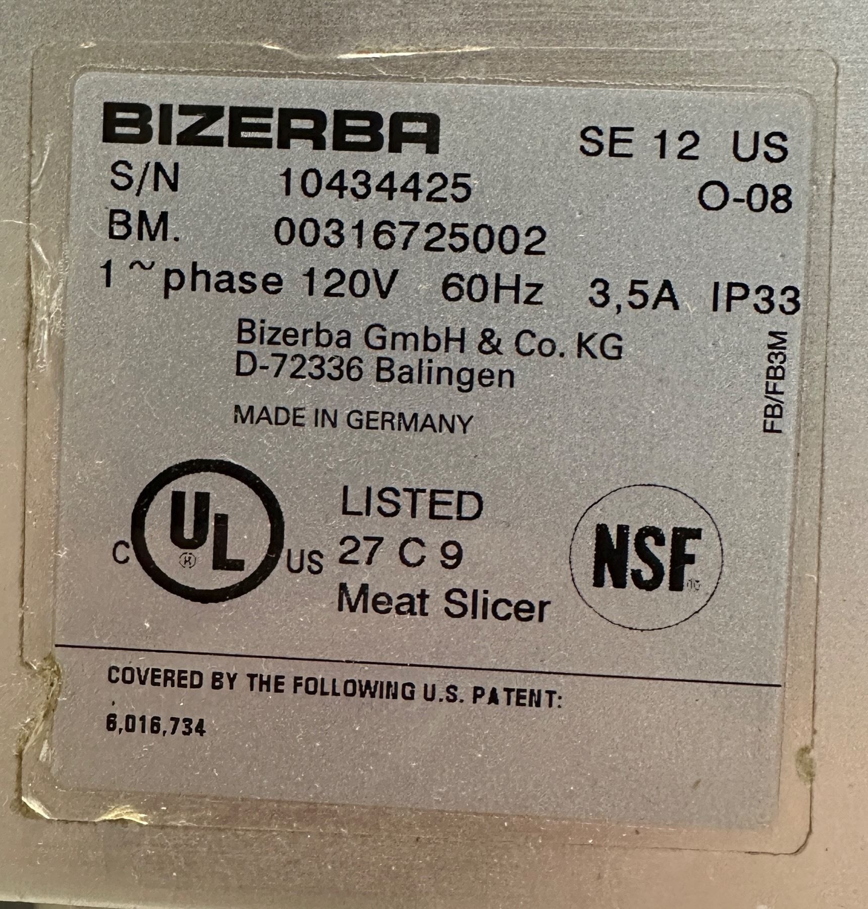 Bizerba - Meat Slicer - Model: SE 12 US, tested working