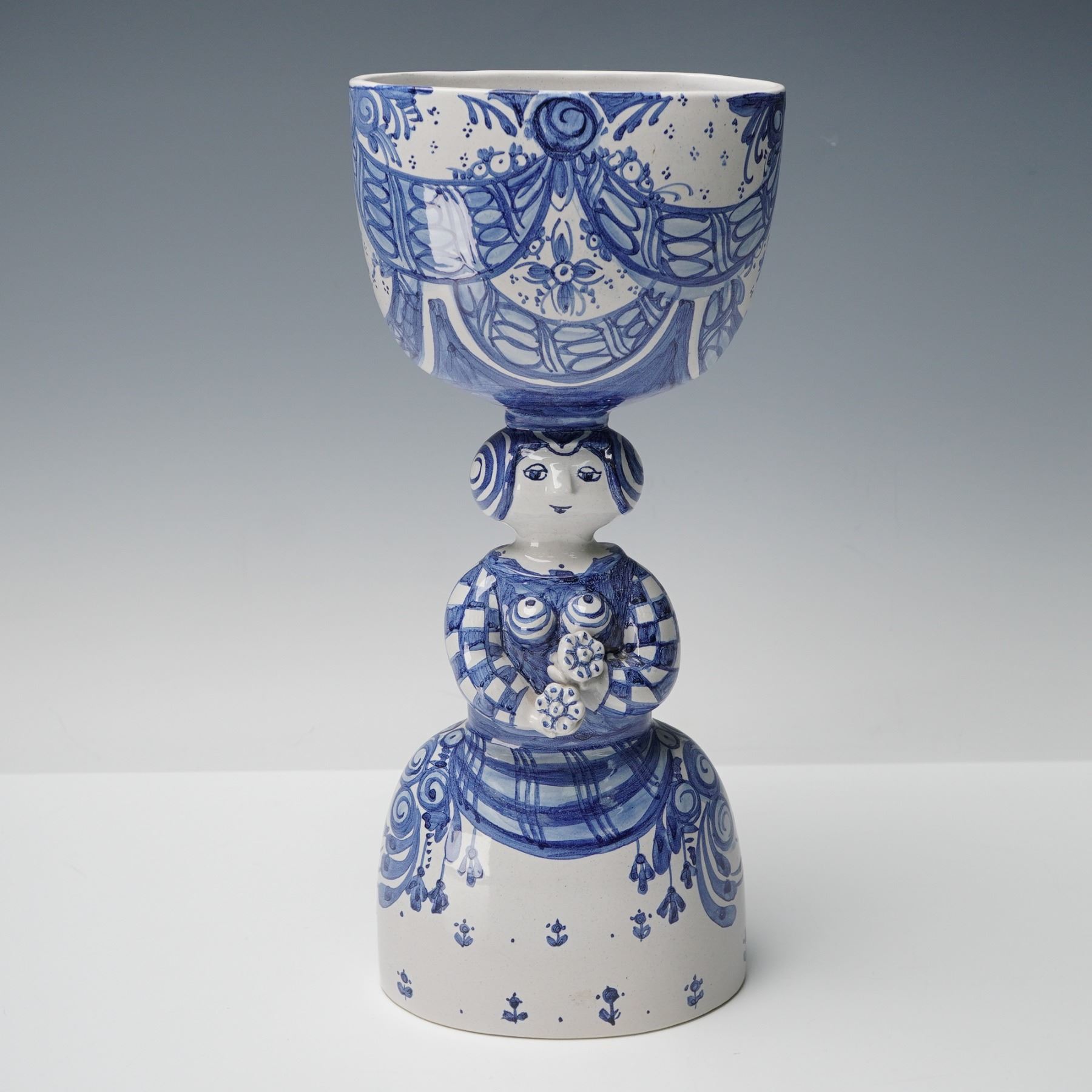 Bjorn Wiinblad Ceramic Blue and White Figural Vase
