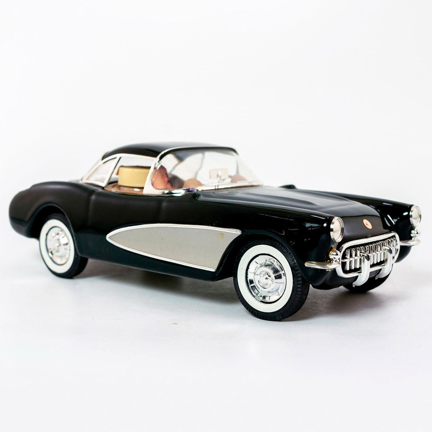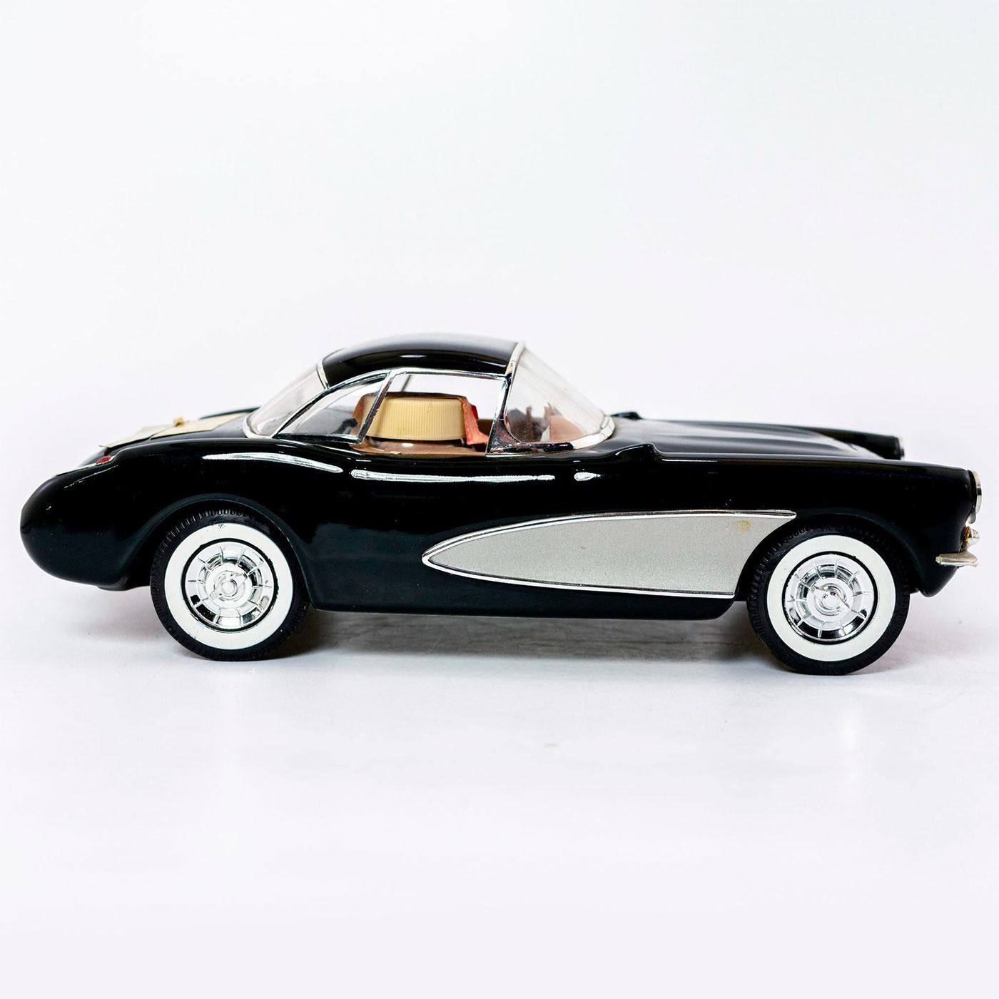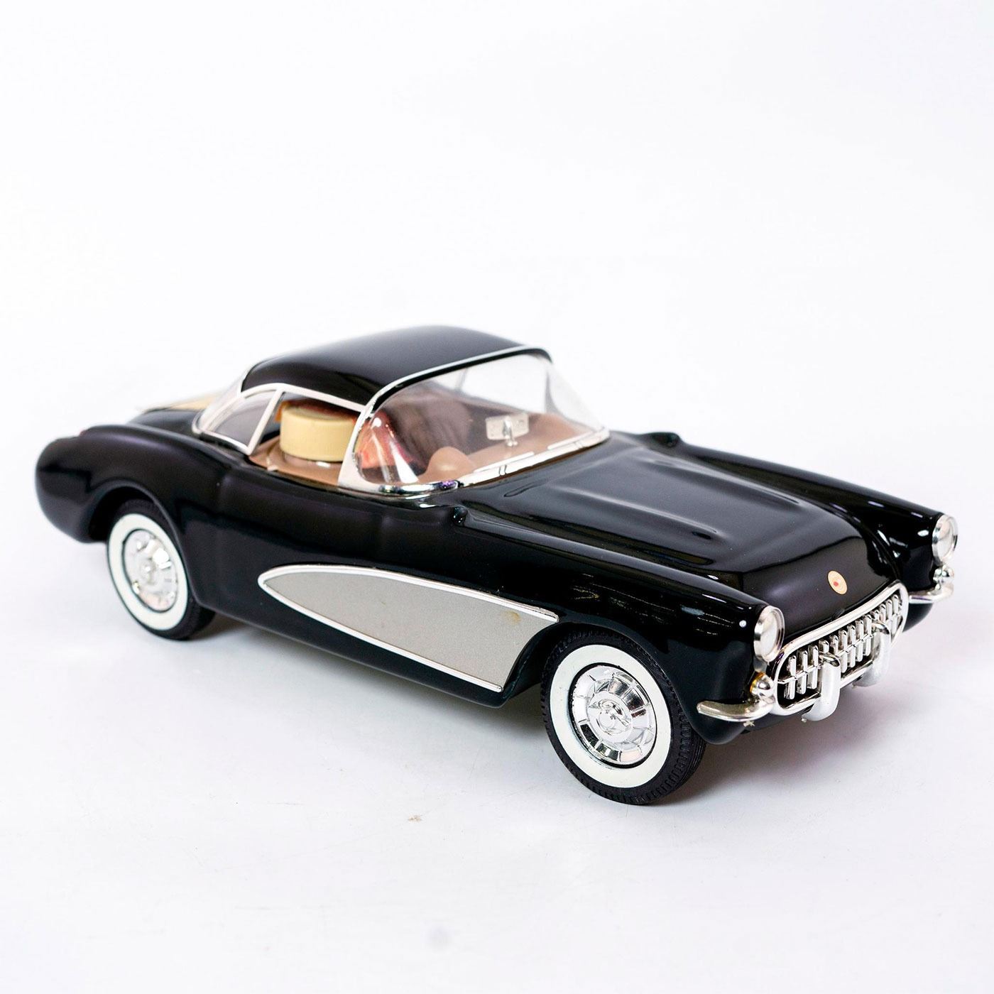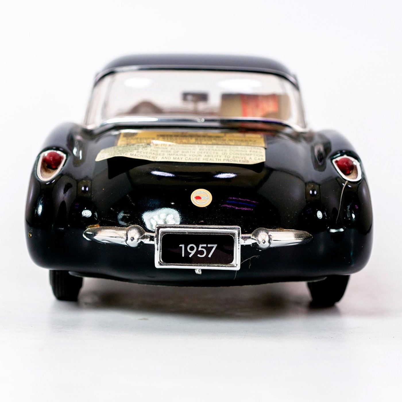 Porcelain undercarriage. Black glossy finish with tan interior and grey accents on sides. Alcohol not included. With original box. Automobilia and Americana
