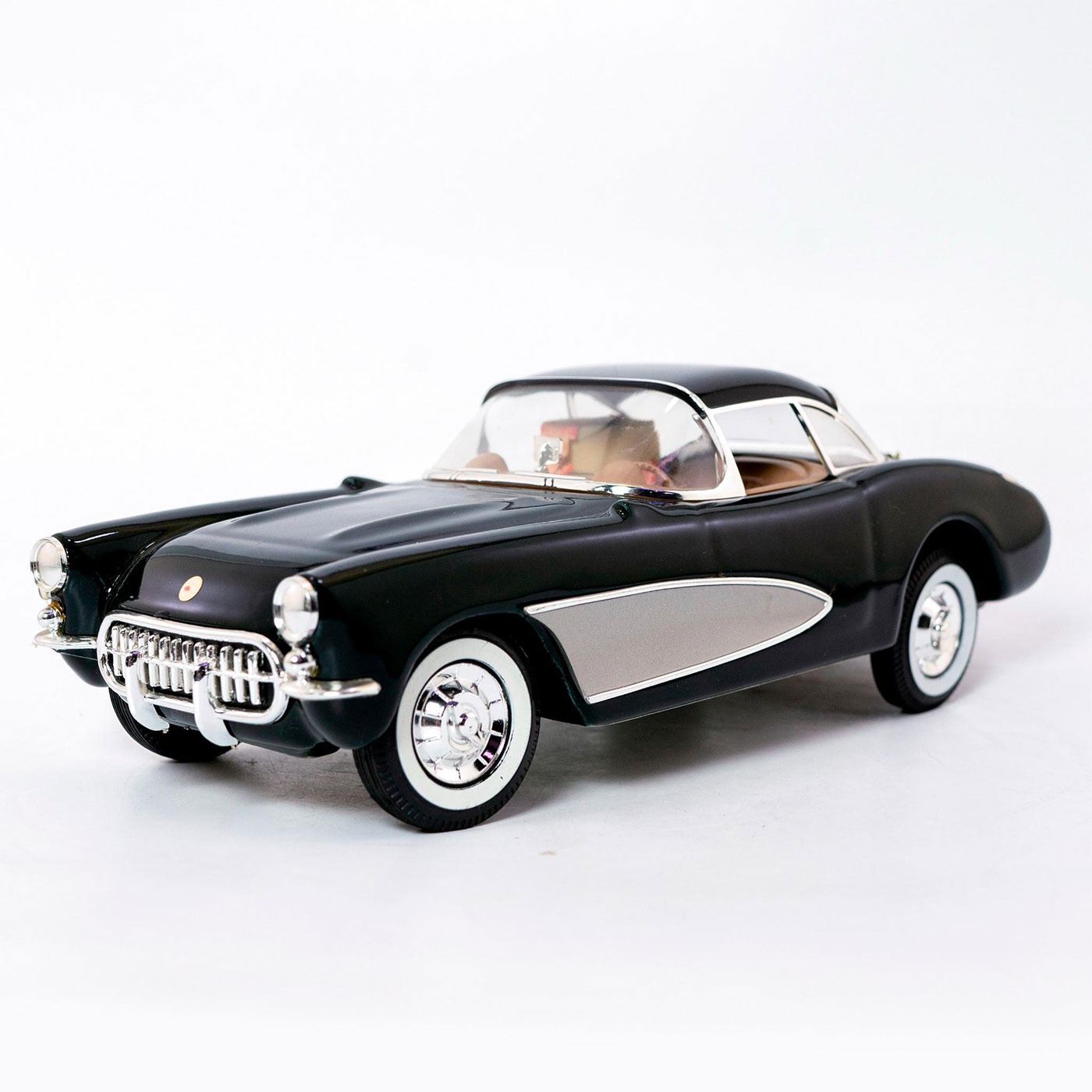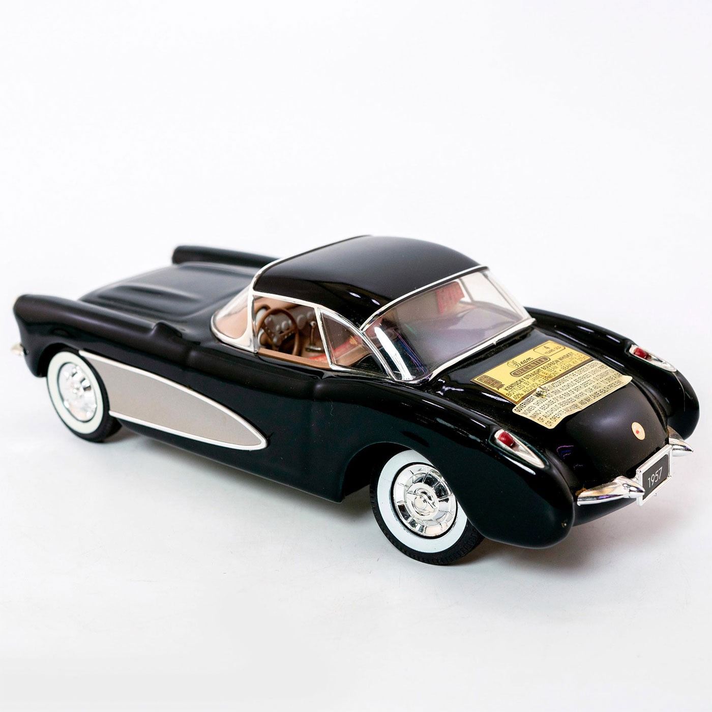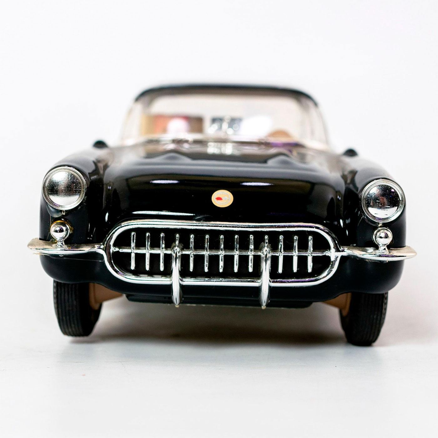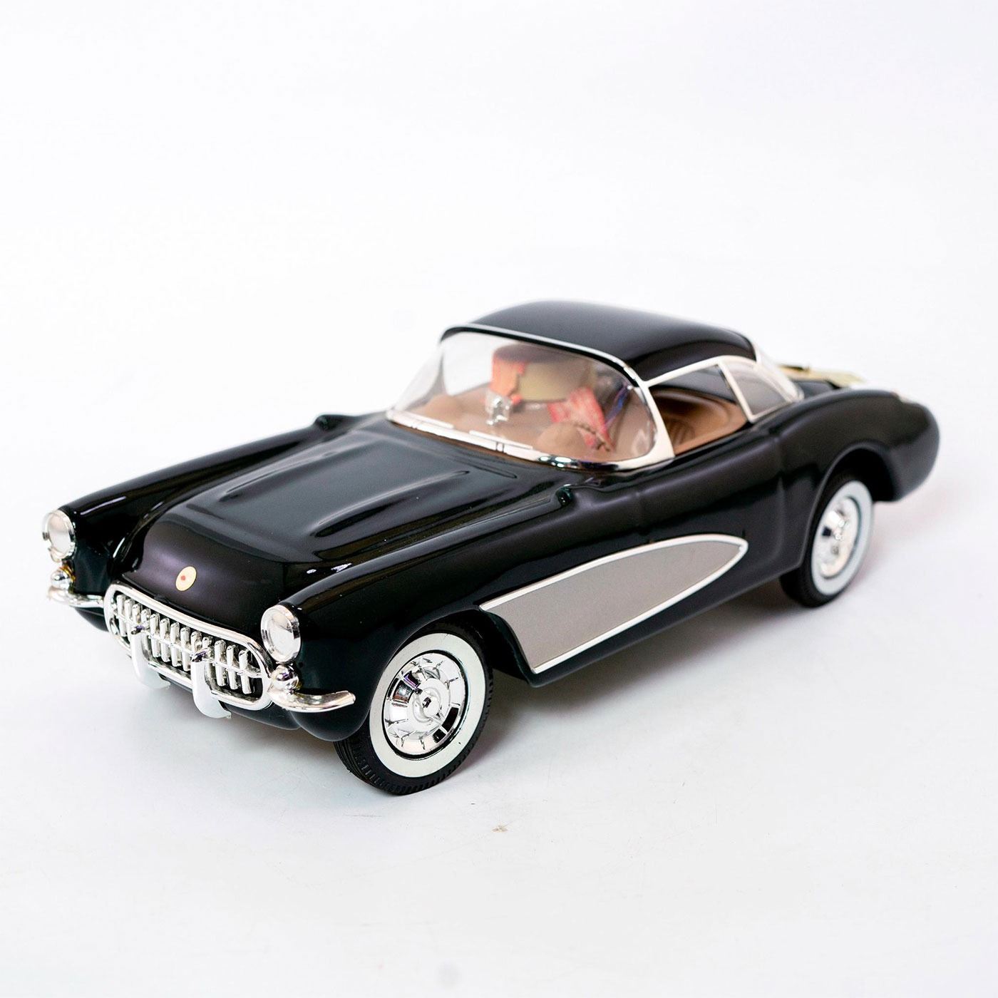 Porcelain undercarriage. Black glossy finish with tan interior and grey accents on sides. Alcohol not included. With original box. Automobilia and Americana