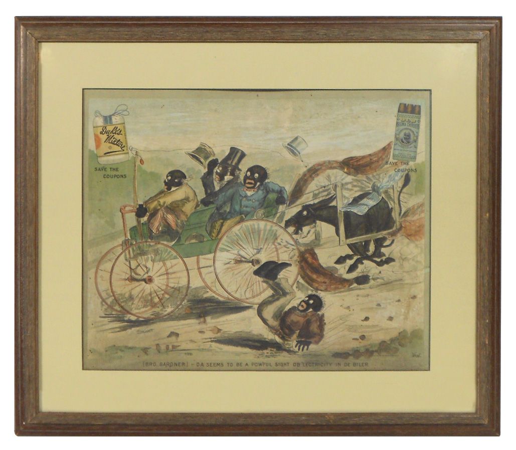 Black Americana American Tobacco Co. print, "(Bro. Gardner)-Da Seems To Be a Pow'ful Sight Ob'Lectri