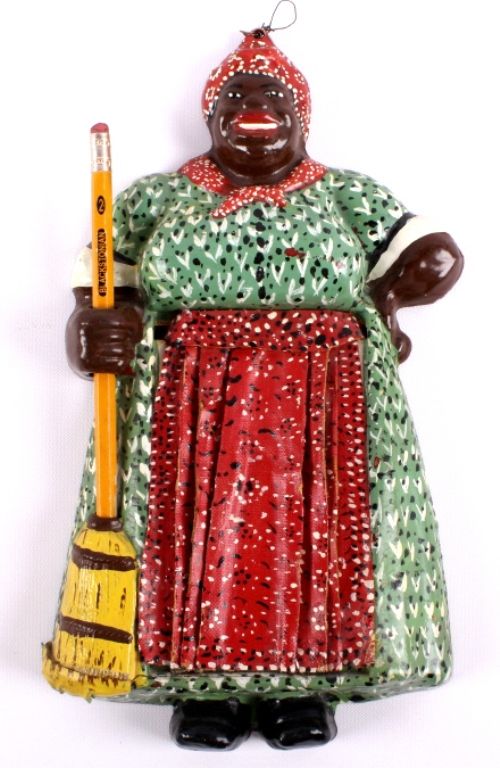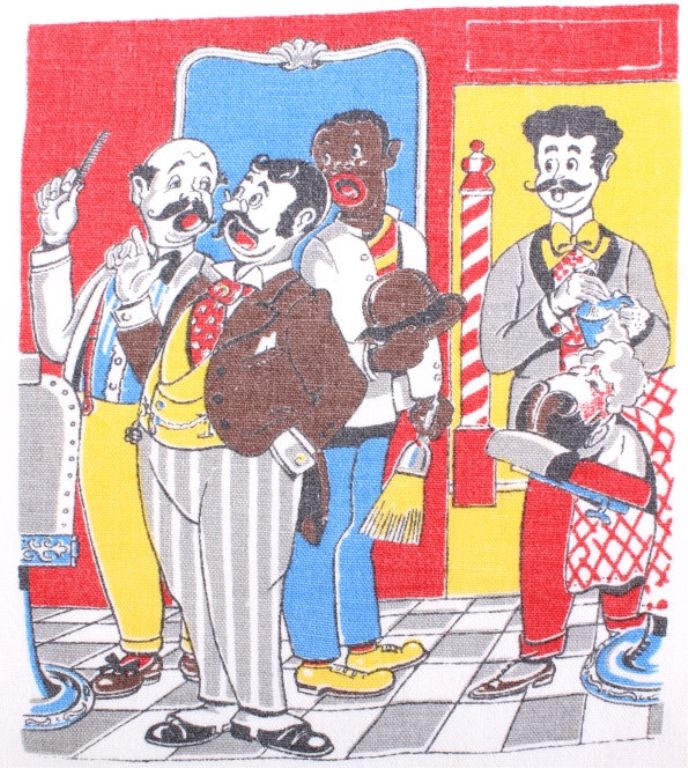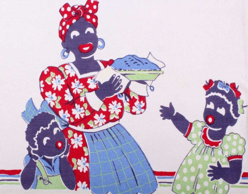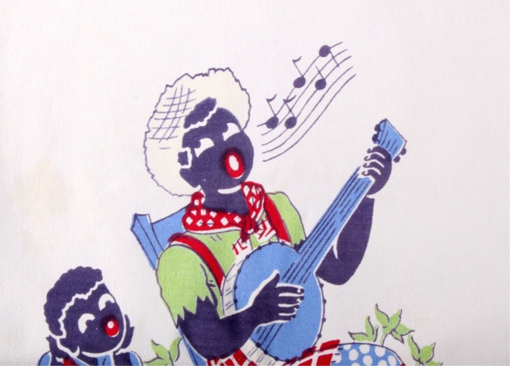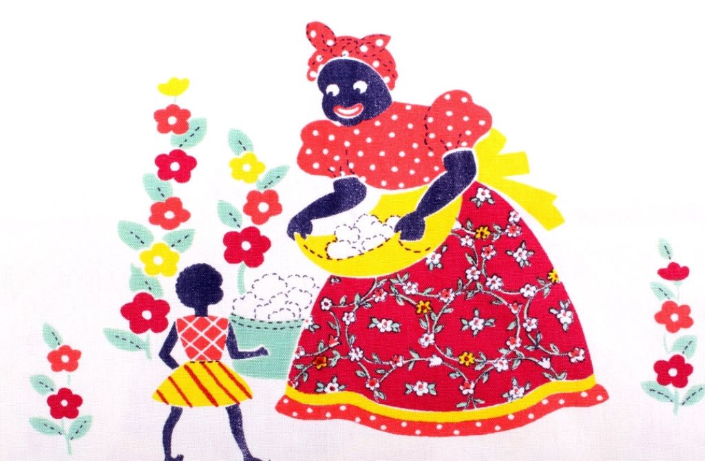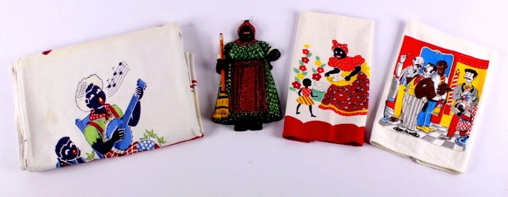 This lot features a collection of black Americana items. There is a set of hand towels with a tablecloth and a pencil holder. The tablecloth measures 51" x 58", the towels are 14" x 23.5", and the pencil holderis 6" x 10.5".